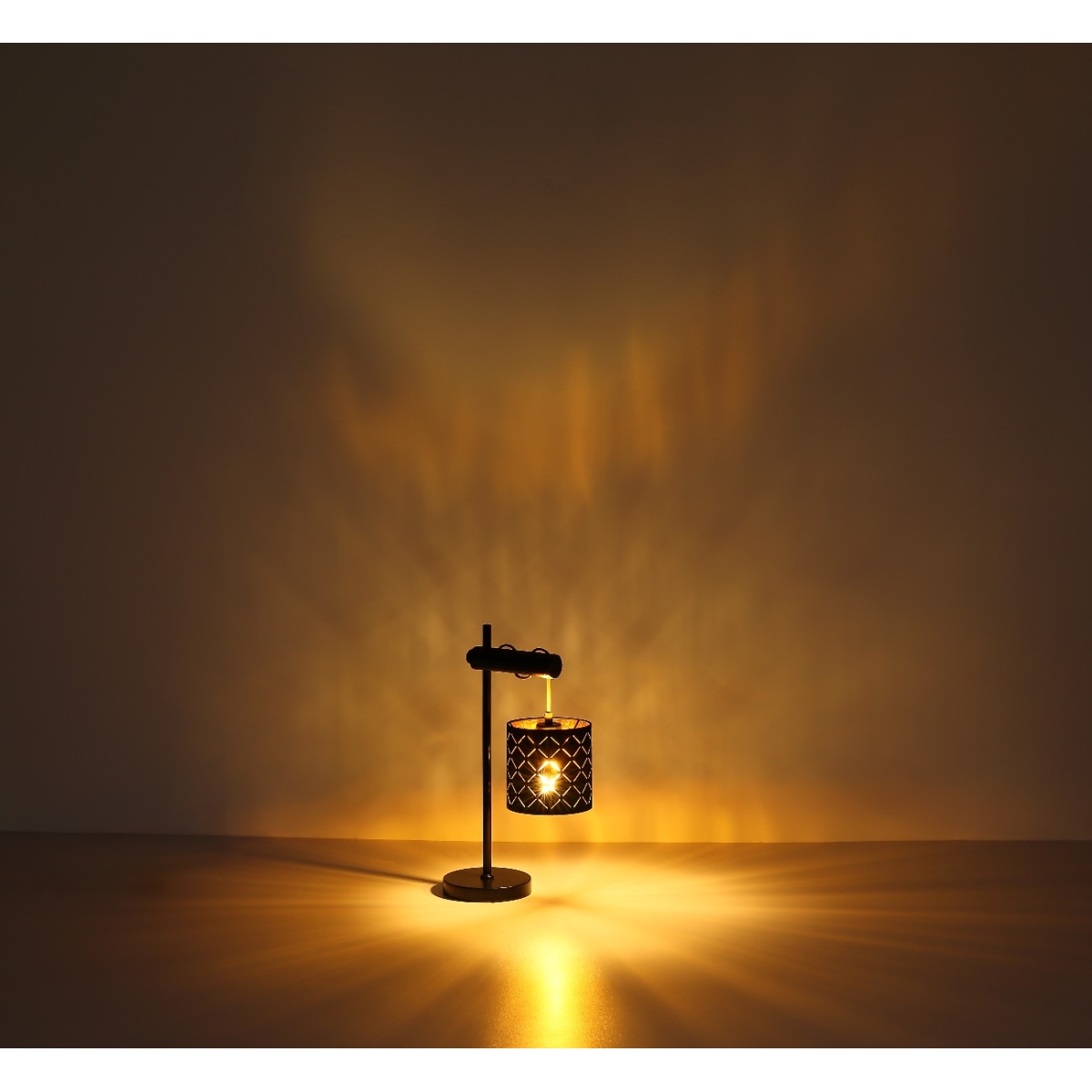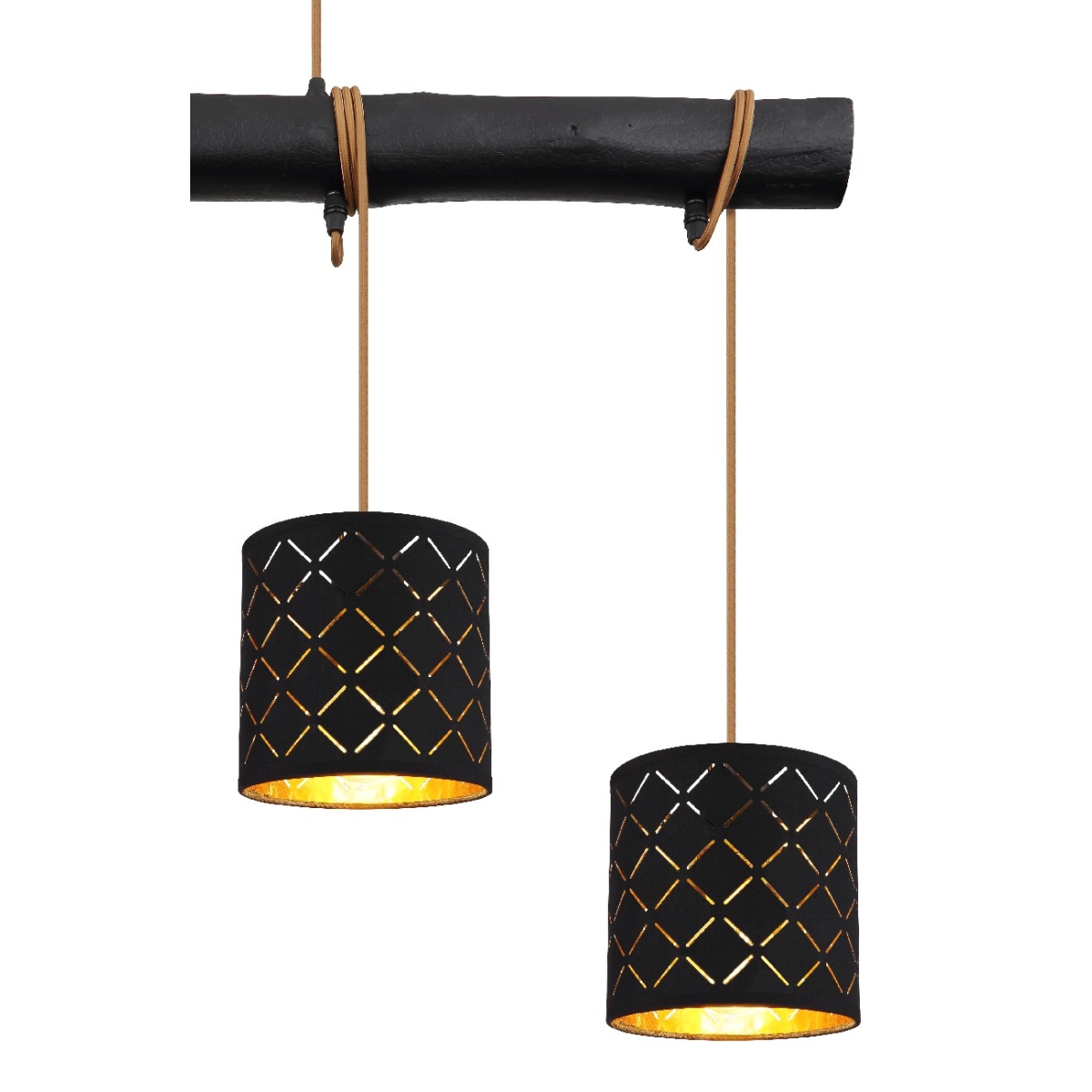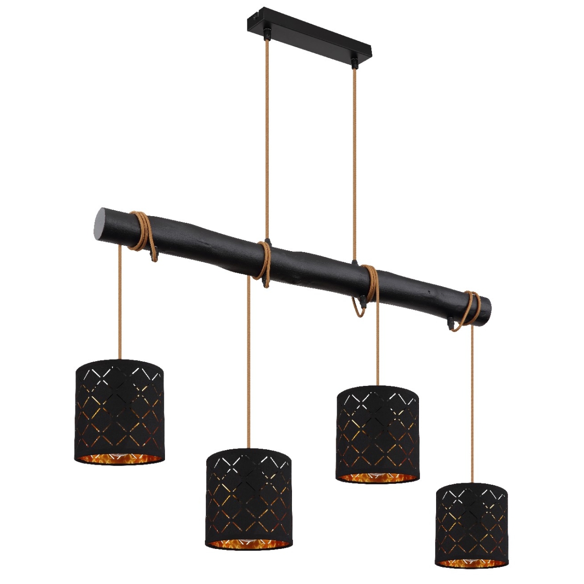 Ova visilica iz serije CLARKE ubeđuje svojim prelepim dizajnom crnog i zlatnog. Lampa se sastoji od 4 abažura sa ukrasnim detaljima, od kojih je svaki opremljen E27 grlom i visi sa plafona na kablovima zlatne boje. Visina lampe može se podesiti uz pomoć crnog drvenog stuba dužine 85 cm , ukupno 150 cm jednostavnim umotanjem. Grla E27 vam omogućavaju da koristite sijalice po vašem izboru, do maksimalne snage od 40 vati. Sa drugim modelima ove serije možete ulepšati svoj dnevni boravak.