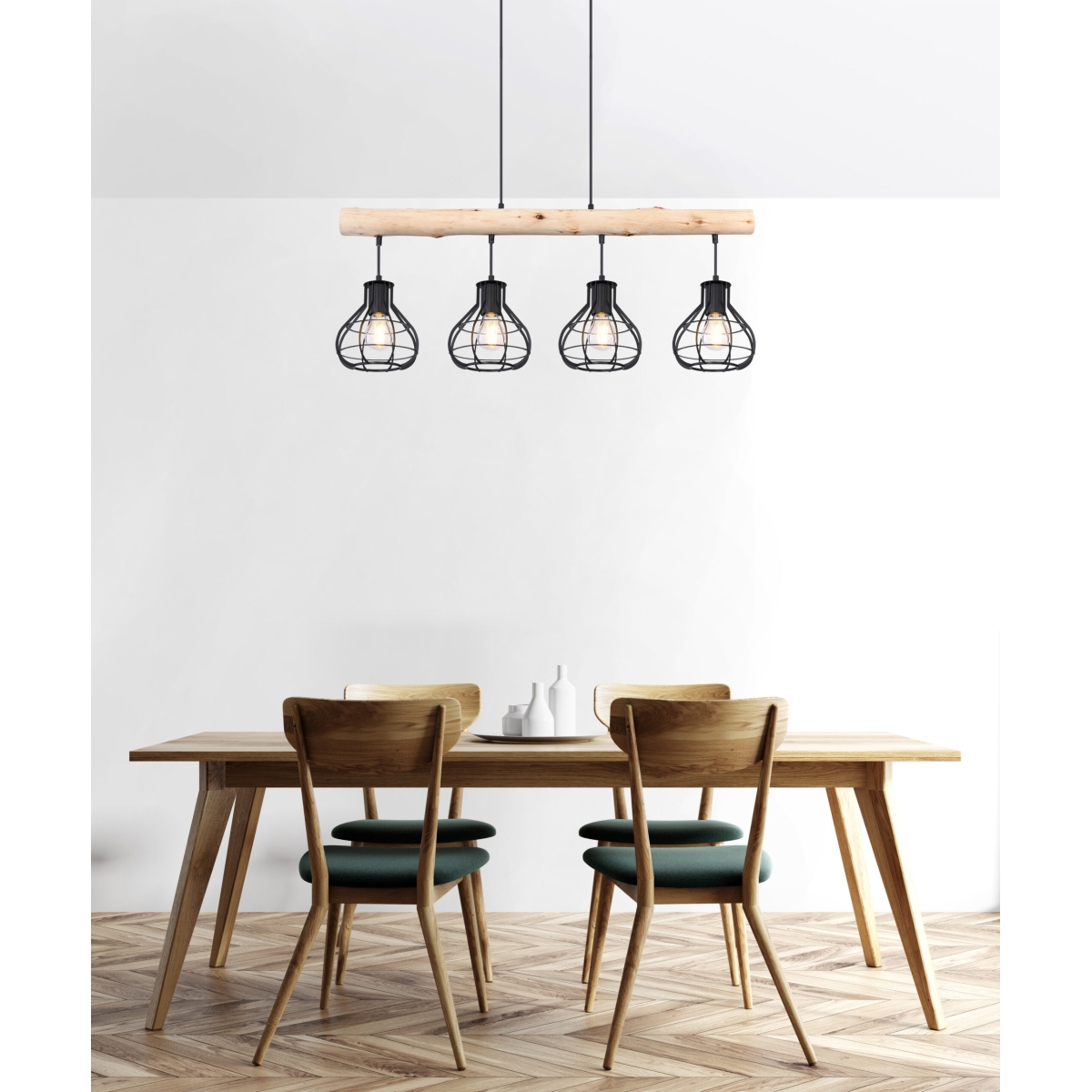 Sa ovom impresivnom visilicom napravljenom od drveta i trendi metalnim mrežastim abažurima iz CLASTRA serije, dobijate detalji će sigurno privlačiti poglede. Koristite visilicu za dnevnu sobu, kao udobno osvetljenje za trpezariju ili iznad kuhinjskog stola. Možete koristiti sijalice do maksimalne snage od 4×60 vati. Svaka E27 sijalica je vidljiva, što omogućava alternativno korišćenje ukrasne sijalice. Preporučujemo korišćenje LED sijalice za još veću održivost. Visilica impresionira svojom posebnom mešavinom materijala, dočarava lepe trenutke svetlosti i osigurava udobnu životnu situaciju.