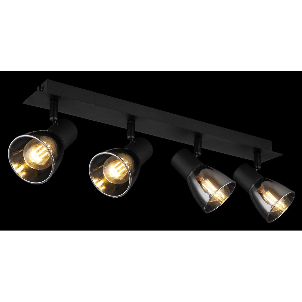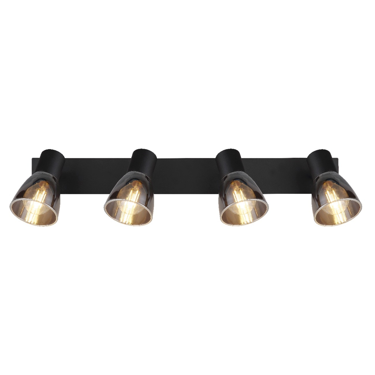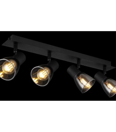 Ovaj prelepi reflektor serije CLAUDE od metala crna boja inspiriše sjajnim dizajnom. Na pravougaonoj plafonskoj osnovi (50x7cm) postoje četiri grla E14, svako sa prelepom staklenom kuglom u boji dima (Ø7cm). Lampa se pali i gasi pomoću ON/OFF prekidača. Grlo E14 vam daje mogućnost da odredite boju svetla i jačinu do maksimalnog izlaza od 40 vati. Sa ostalim modelima ove serije možete divno upotpuniti svoj dnevni boravak.