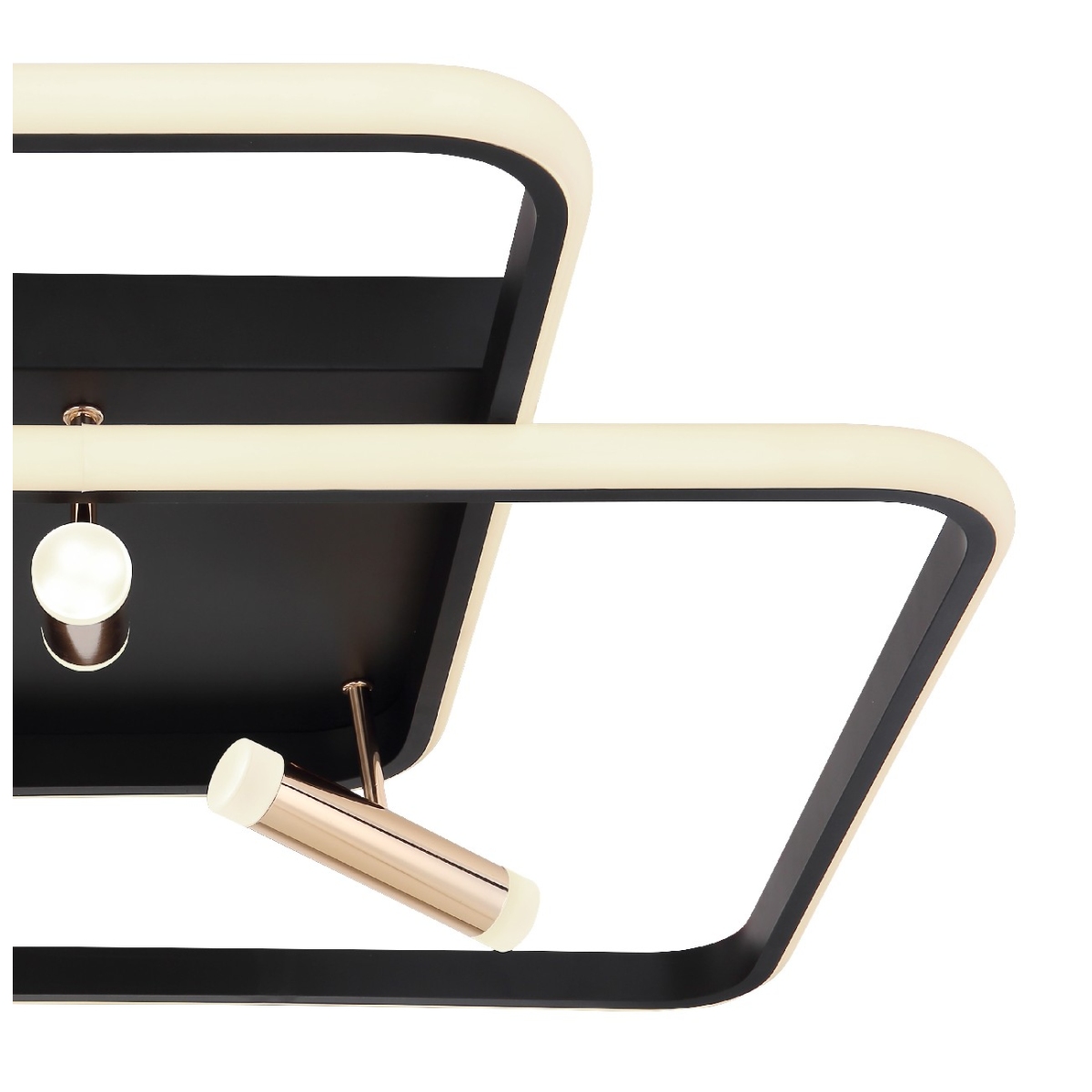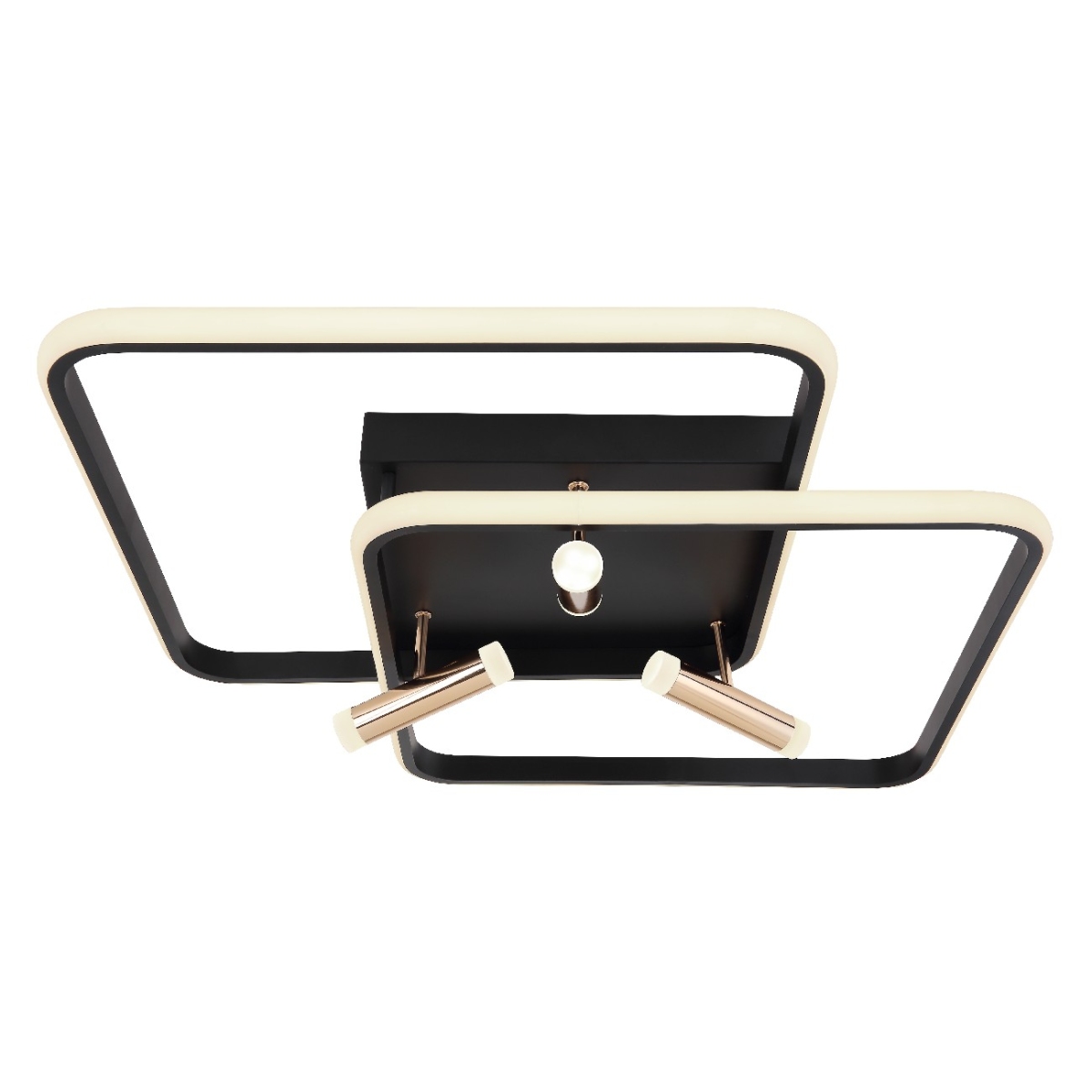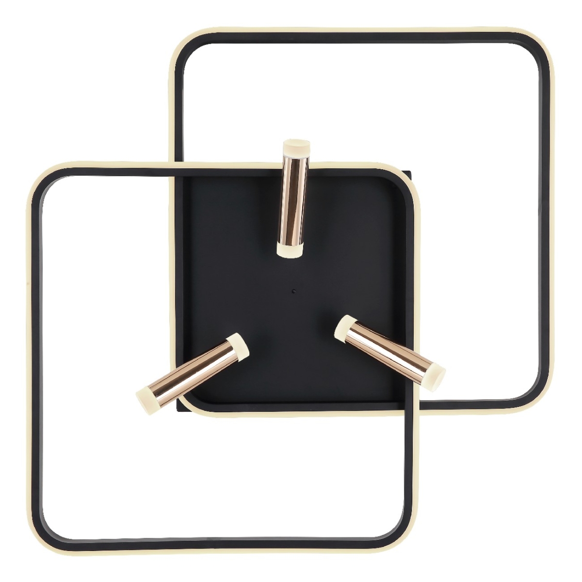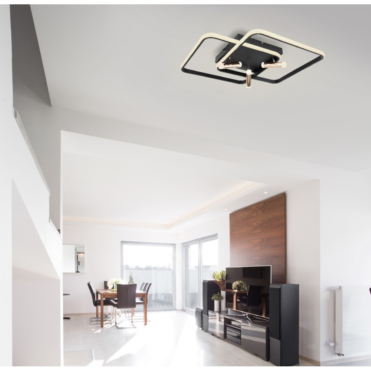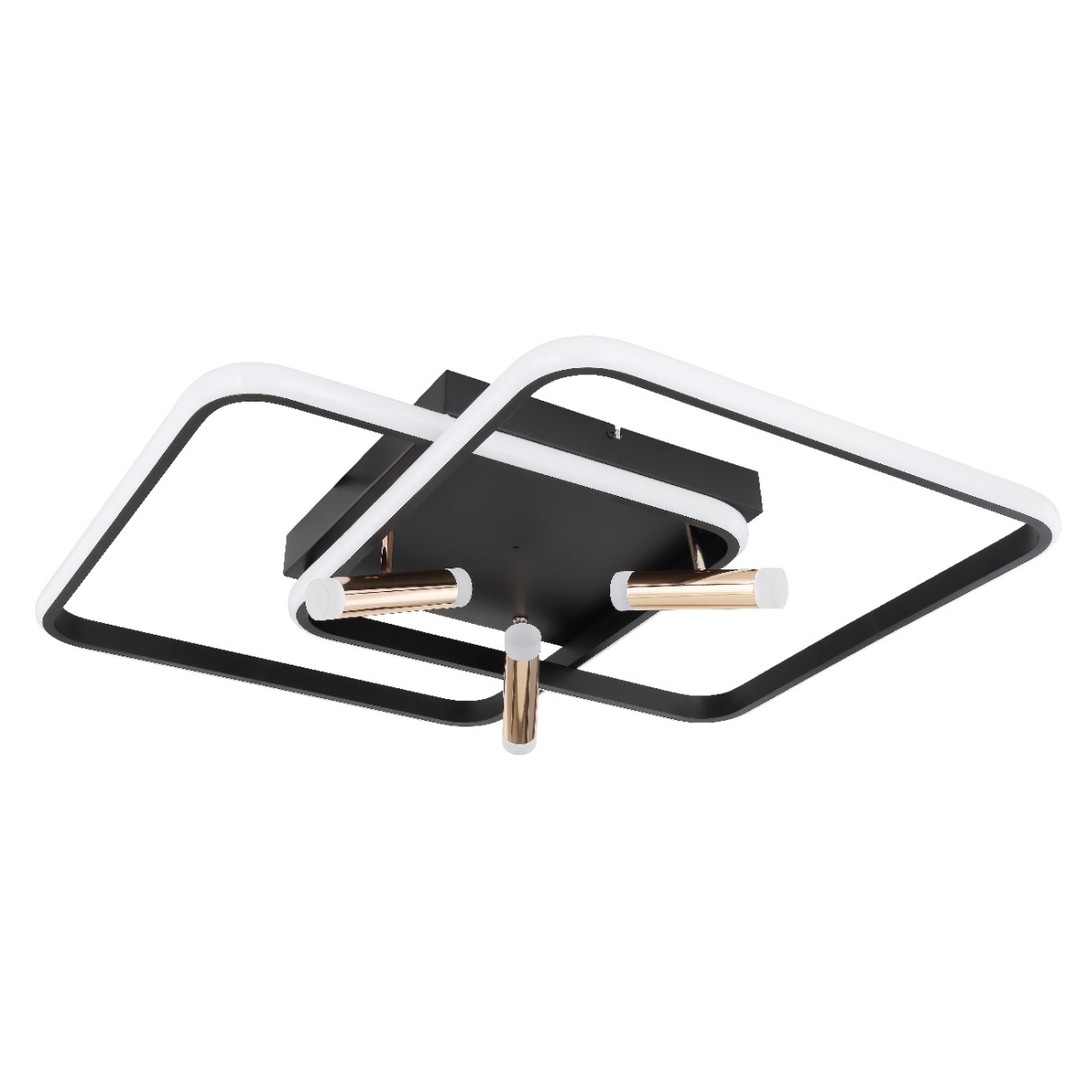 Ova moderna plafonska lampa iz serije COCO (65,5×66 cm) upotpunjuje vaš enterijer elegantnim izvorom svetlosti. Sastoji se od dva preklapajuća, crno-mat metalna rama, od kojih je svaki obavijen spolja opalnim akrilima. Pored toga, poseduje tri zlatno obojena aluminijumske grane, koje su takođe opremljene akrilima na oba kraja. Uključene LED sijalice obezbeđuju 2300 lumena jake svetlosti. Uz pomoć obezbeđenog daljinskog upravljača, možete ne samo da prigušite svetlo, već i da podesite boju svetla u nekoliko faza između tople i hladno bele (2700 do 6000 Kelvina) i takođe imate funkciju noćnog svetla. Sa ostalim modelima iste serije možete upotpuniti celokupnu sliku u svom domu.