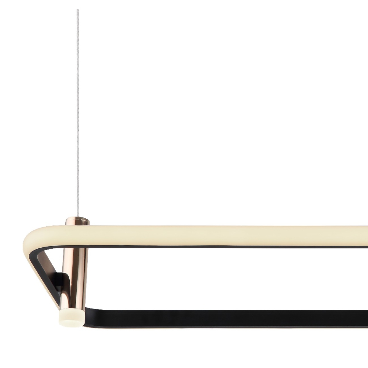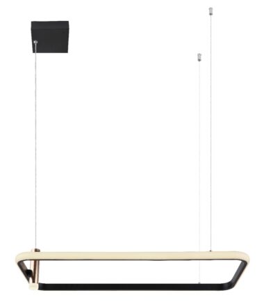 Ova moderna visilica iz serije COCO (75,5×33,5 cm) upotpunjuje vaš enterijer elegantnim izvorom svetlosti. Sastoji se od crnog mat metalnog rama i zlatno obojene aluminijumske grane, od kojih je svaka obezbeđena opalnim akrilima i visi na metalnim kablovima do 150 cm od plafona. Akril prekriven led sijalicama obezbeđuje 1900 lumena jake svetlosti. Uz pomoć obezbeđenog daljinskog upravljača, možete ne samo da prigušite svetlo, već i da podesite boju svetla u nekoliko faza između tople i hladneo bele (2700 do 6000 Kelvina) i takođe imate funkciju noćnog svetla. Sa ostalim modelima iste serije možete upotpuniti celokupnu sliku u svom prostoru.