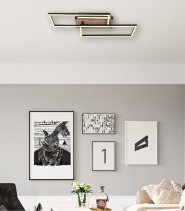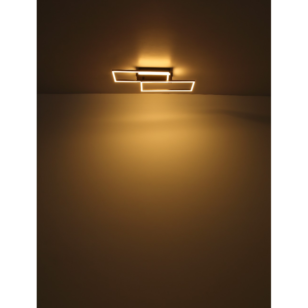 Uronite u fascinantan svet plafonske lampe serije COLLI! Njen mat crni metalni okvir u kombinaciji sa tamnim MDF drvenim izgledom i mat crnim aluminijumom daje vašoj sobi moderan i elegantan ambijent. Opalna plastika osigurava ravnomernu distribuciju svetlosti. Sa nekoliko nivoa preko zidnog prekidača možete podesiti svetlo u skladu sa vašim preferencijama. Lampa nudi praktičnu funkciju memorije i može se rotirati i okretati. Možete da birate između tri nivoa: glavnog svetla, LED-a u okviru ili oba zajedno. Dimenzijama od 600x490x100mm i pravougaonicima od 40 x 15 cm savršeno se uklapa u bilo koju prostoriju. Plafonska lampa COLLI dolazi sa energetski efikasnim LED-om od 34W koji obezbeđuje jarko osvetljenje sa izvorom od 3800lm i izlazom od 1700lm sa prijatnom svetlosnom bojom od 3000K. Doživite nesvakidašnje iskustvo osvetljenja uz COLLI plafonsko svetlo!