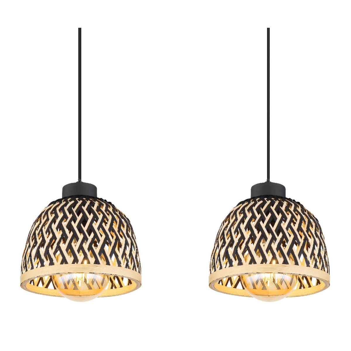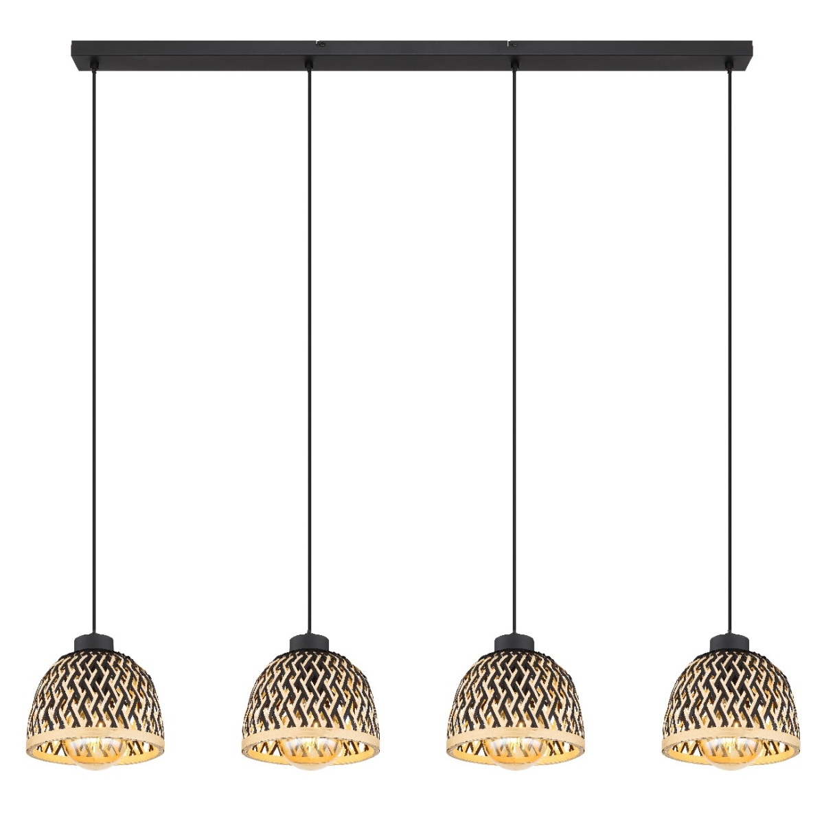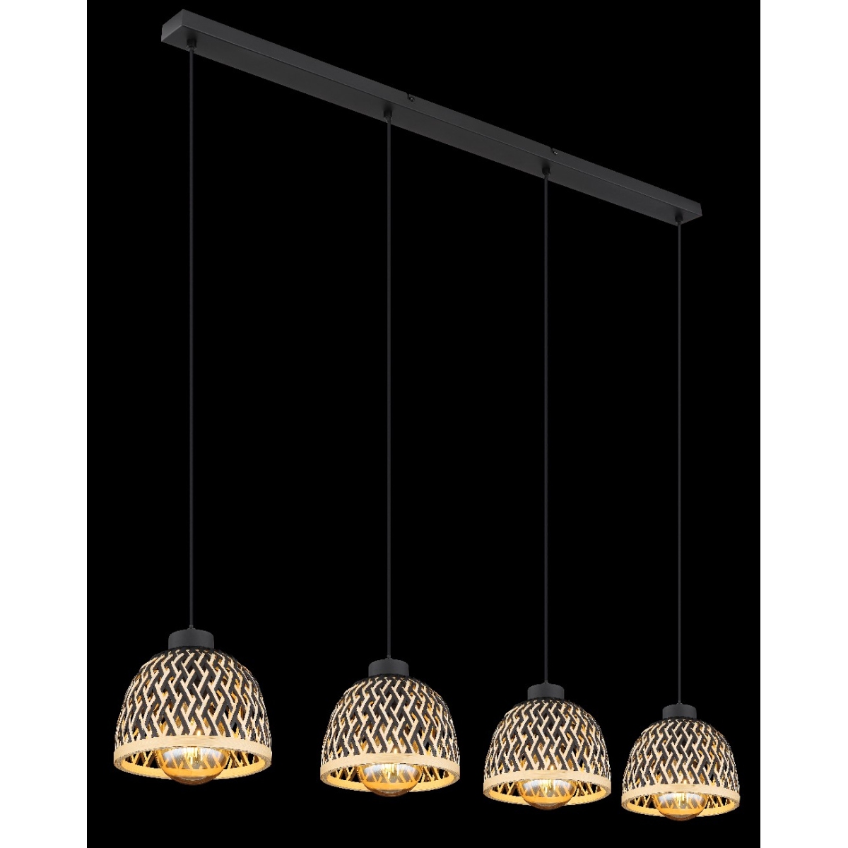 Ova elegantna visilica iz serije COLLY inspiriše sjajnom izradom od bambusa i metala. Četiri crna kabla dužine 1.2 m nastavljaju se sa uske plafonske osnove (1.1 m) napravljene od crnog mat metala, svaki sa E27 LED grlom. E27 LED grlo prekriva abažur napravljen od bambusa koji je crne i prirodne boje. Daje vam mogućnost da sami odredite boju svetla i jačinu do maksimalne snage od 15W.