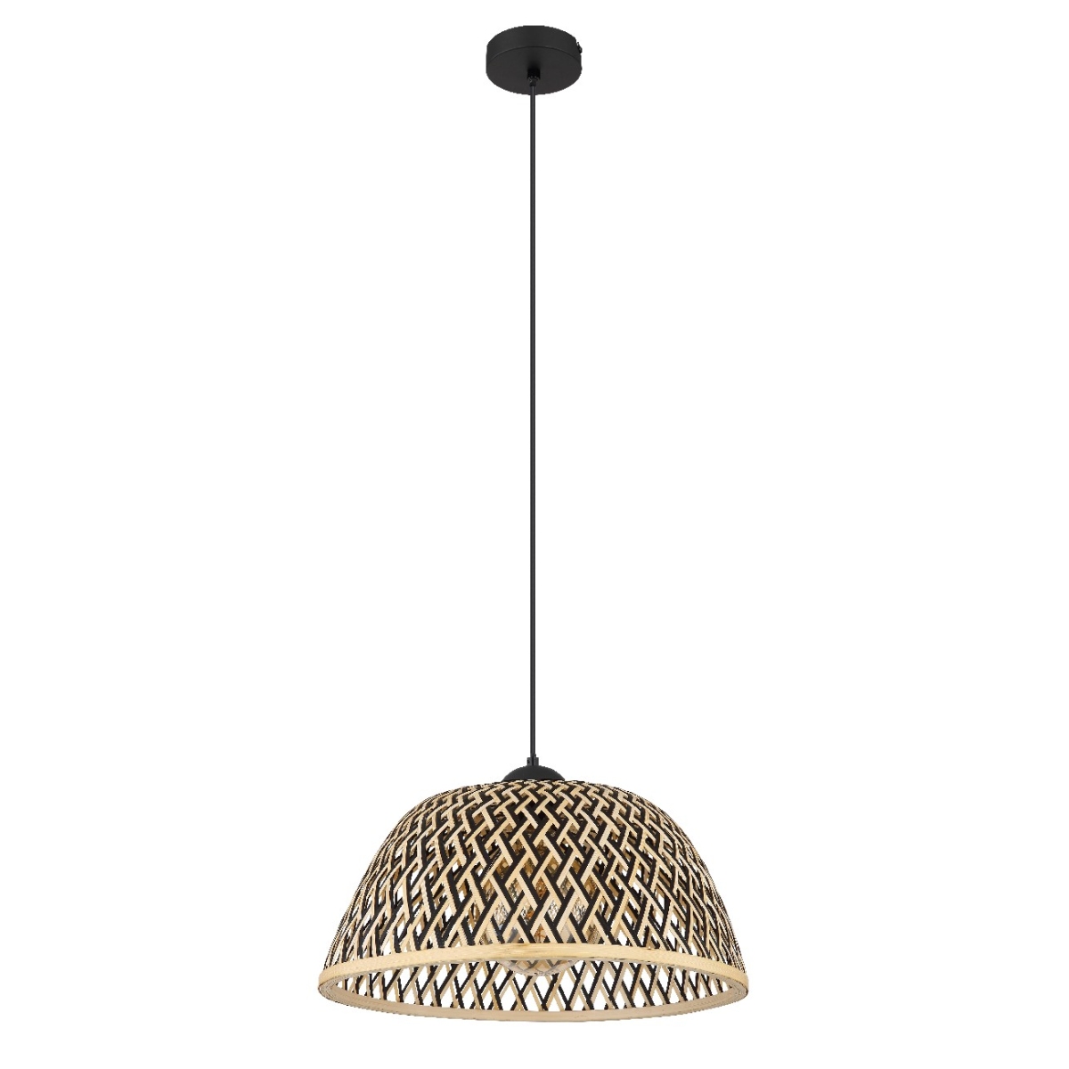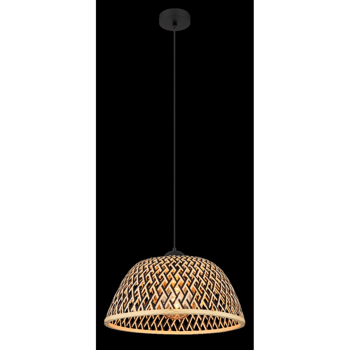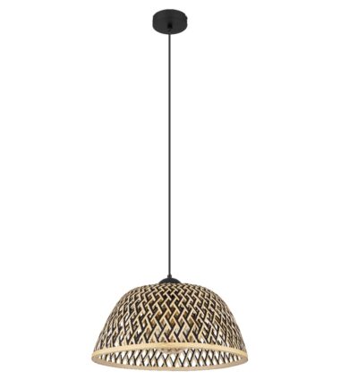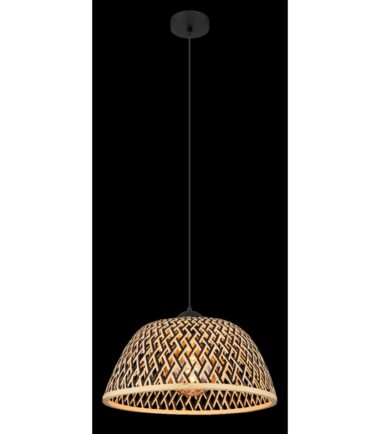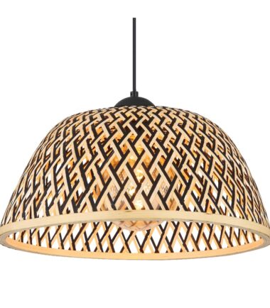 Ova prelepa visilica inspiriše sjajnim dizajnom. Od okruglog plafonskog nosača nastavlja se kabl dugačak 1,2 metara do grla E27 koje je prekriveno oblikovanim abažurom (Ø40 cm) napravljenim od bambusa u sjajnim prirodnim bojama. Grlo E27 vam omogućava da sami odredite intenzitet svetlosti i jačinu do maksimalne snage od 40 vati. Zbog trajnosti i uštede energije preporučujemo LED sijalice.