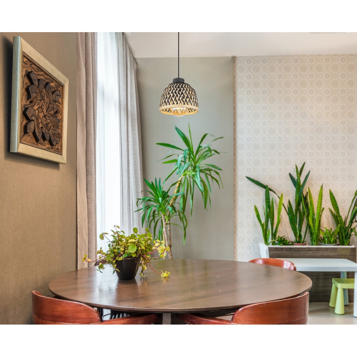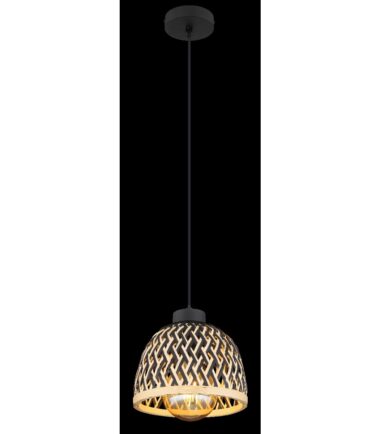 Ova elegantna visilica serije COLLY ističe se sjajnom izradom od bambusa i metala. Kabl dužine 1.2 m nastavlja se na okrugli plafonski nosač (Ø 20 cm) od crnog mat metala do grla LED E27 grla. E27 LED grlo prekriva abažur, napravljen od bambusa koji je crne i prirodne boje. Daje vam mogućnost da sami odredite boju svetla i jačinu do maksimalne snage od 15W.