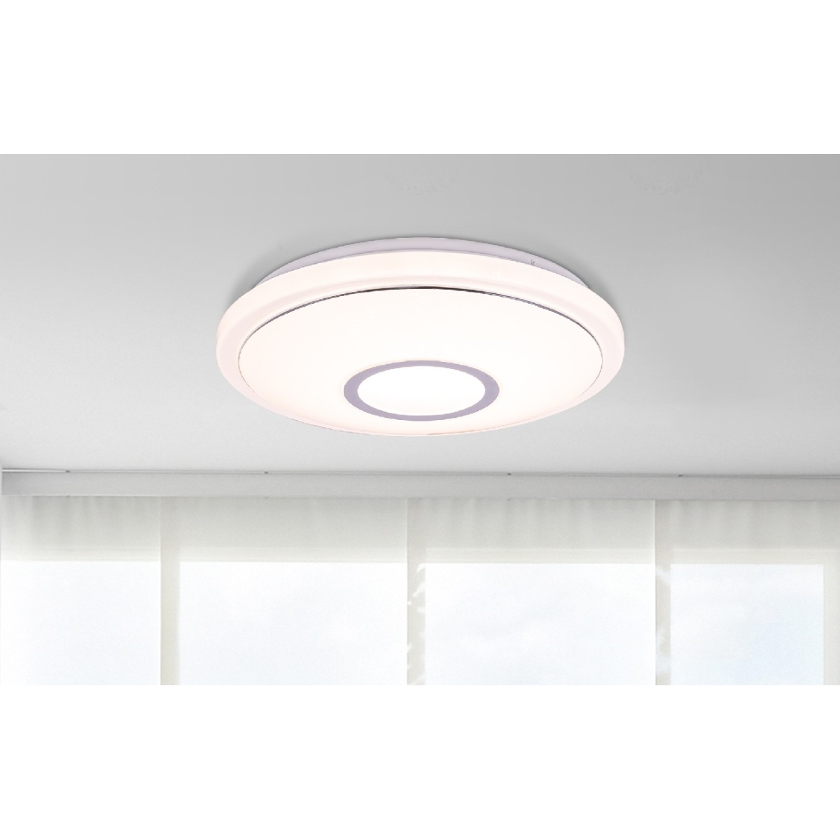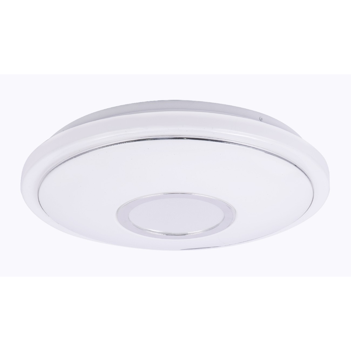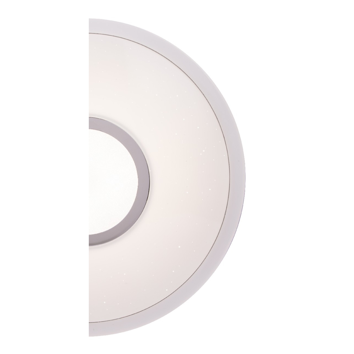 Ova klasična, elegantna plafonska lampa CONNOR (Ø 40cm) napravljena od belog akrila sa svetlucavim dekor efektom. Pomoću uključenog daljinskog upravljača i CCT funkcije, svetlosna boja se može regulisati i fiksirati u nekoliko faza između prijatnog toplog belog 3000K i 6000K hladnog belog svetla. Sa uključenom LED sijalicom od 16 vati, ova plafonska lampa obezbeđuje maksimalno 1040 lumena jako svetlo, može se zatamniti po želji i prilagoditi dotičnim situacijama. Zahvaljujući integrisanoj RGB 3 Watt LED sijalici, ova unutrašnja lampa omogućava vašoj sobi da sija u različitim bojama koje odgovaraju raspoloženju. Željena boja se takođe može fiksirati. Pored toga, ova lampa ima funkciju noćnog svetla i funkciju memorije. Ova Smartlight lampa je jednostavna za rad pomoću Tuya Smart aplikacije (Android TM/IOS). Kontrola glasa je laka sa Amazon Echo Tm ili Google Home.