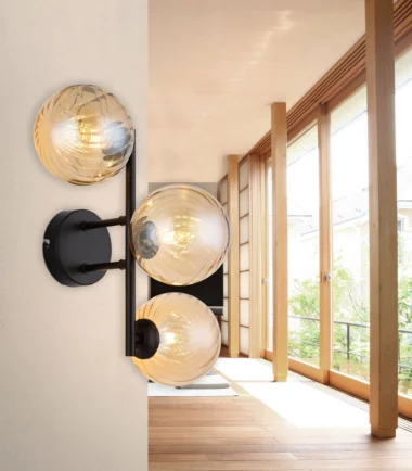 Zidna lampa CONOR sa tri ofsetne staklene sfere ćilibarne boje pruža stilsko osvetljenje i savršeno se uklapa u moderne životne prostore. Pogodna je za G9 LED sijalice (ekskluzivno).