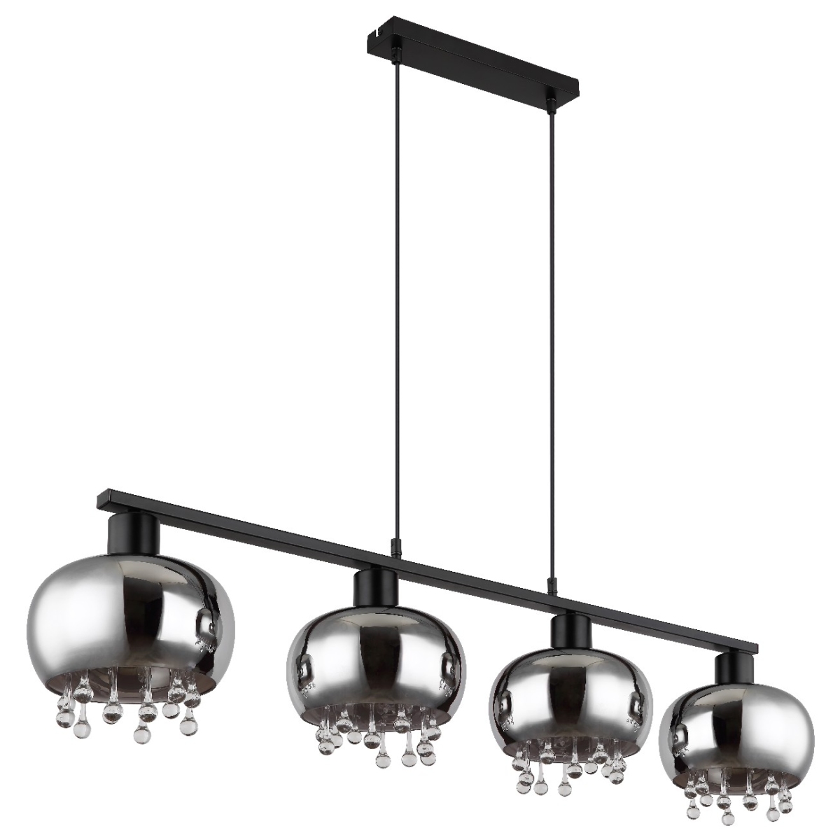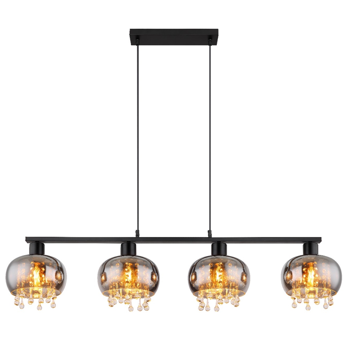 Ova sjajna visilica serije CORRY inspiriše prelepim dizajnom. Od pravougaonog plafonskog nosača vode dva crna kabla do grla E27, ona su prekrivena staklenim abažurima u boji dima sa ukrasima od staklenih kristala (Ø 28 cm). Grla E27 vam omogućavaju da sami odredite boju svetla i jačinu do maksimalne snage od 6W. Zbog dugovečnosti i uštede energije preporučujemo LED sijalice.