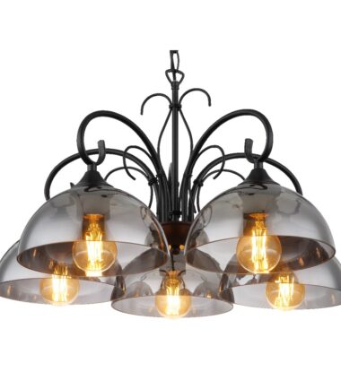 Ova impresivna visilica iz serije COTTAGE je vrhunac u svakoj prostoriji. Crno, mat metalno telo i staklo u boji dima stvaraju toplu i prijatnu atmosferu. Kabl je podesiv po visini i napravljen je od čvrstog PVC-a u crnoj boji, tako da visilicu možete dovesti do željene dužine. Visilica ima prečnik od 560mm i visinu od 1200mm i opremljena je sa 5x E27 40W 230V sijalicama. One se lako instaliraju i obezbeđuju svetlo i prijatno osvetljenje.