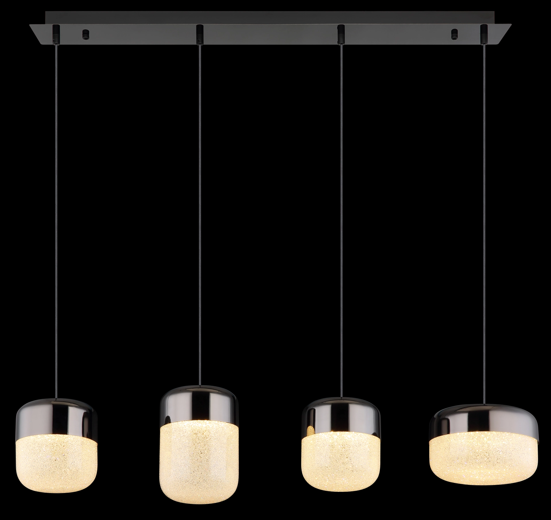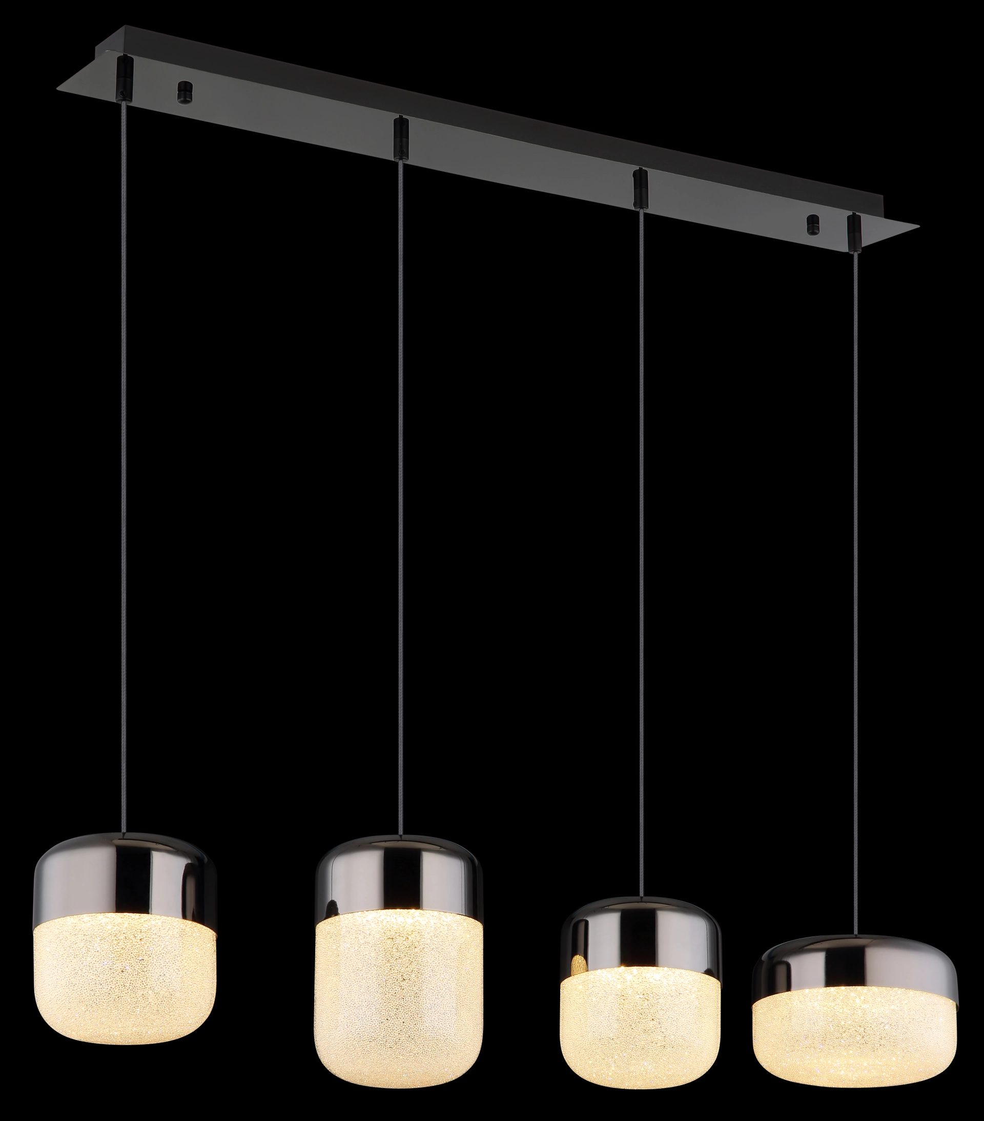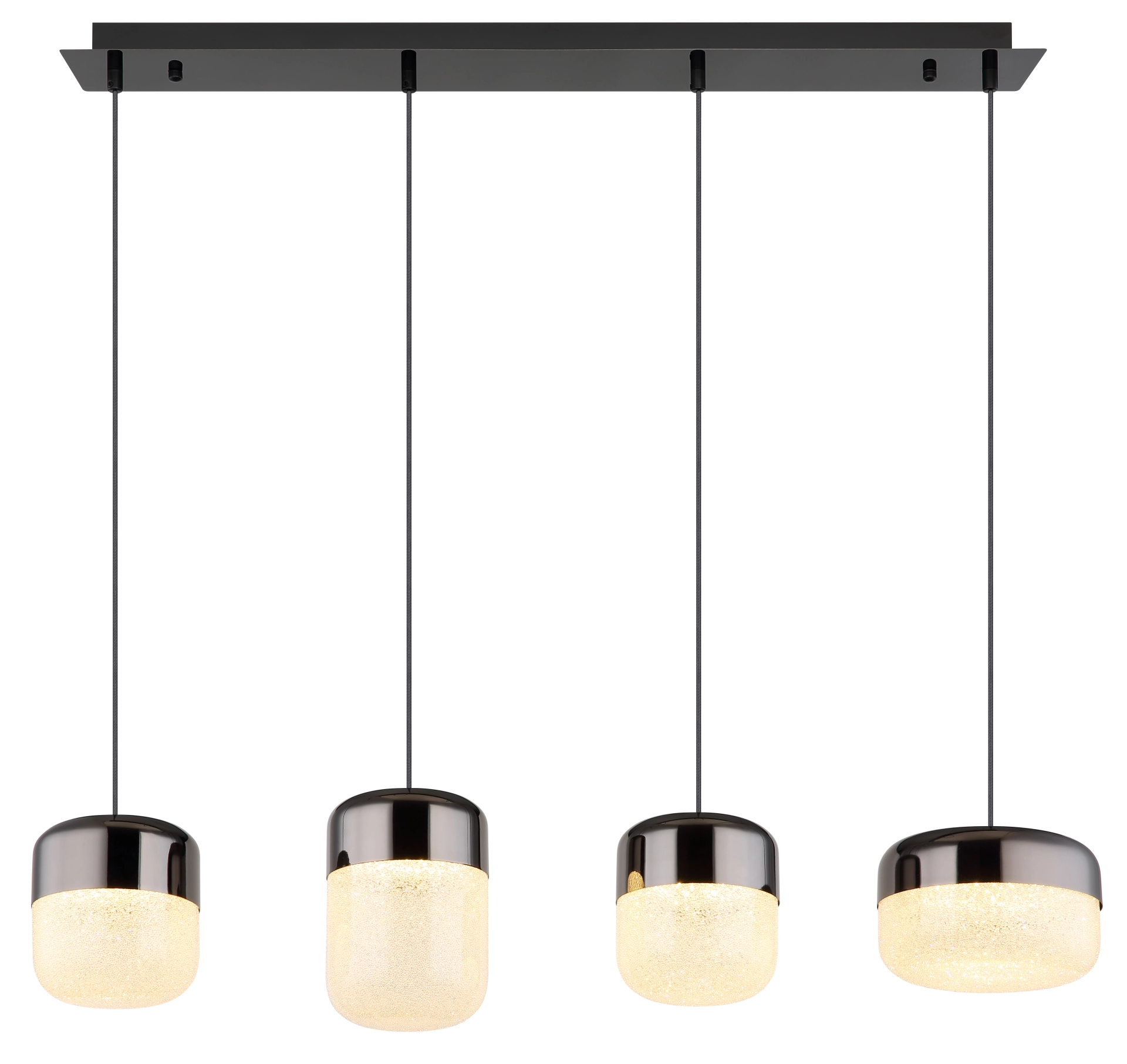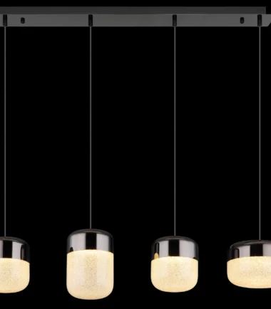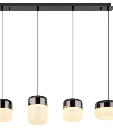 Izdužena viseća lampa CRISTALLICA sa ravnom šinom i 4 lučevičasta okrugla stakla je moderan i stilski izbor za svaku prostoriju. Telo napravljeno od mat grafitnog metala i abažuri od providnog stakla i K9 kristala daju ovoj visećoj lampi elegantan izgled. Sa dužinom od 990 mm i širinom od 200 mm, nudi dovoljno svetlosti sa snagom od 40 W i izlazom od 2611 lumena sa prijatnom bojom svetlosti od 3000 K. Idealna za trpezarijski sto, kuhinjsko ostrvo ili dnevni boravak, ova viseća lampa stvara ugodnu atmosferu. Moderan dizajn i visokokvalitetna izrada čine je privlačnom u svakoj prostoriji. Unesite stilski ambijent i prijatno svetlo u svoj dom pomoću ove viseće lampe.