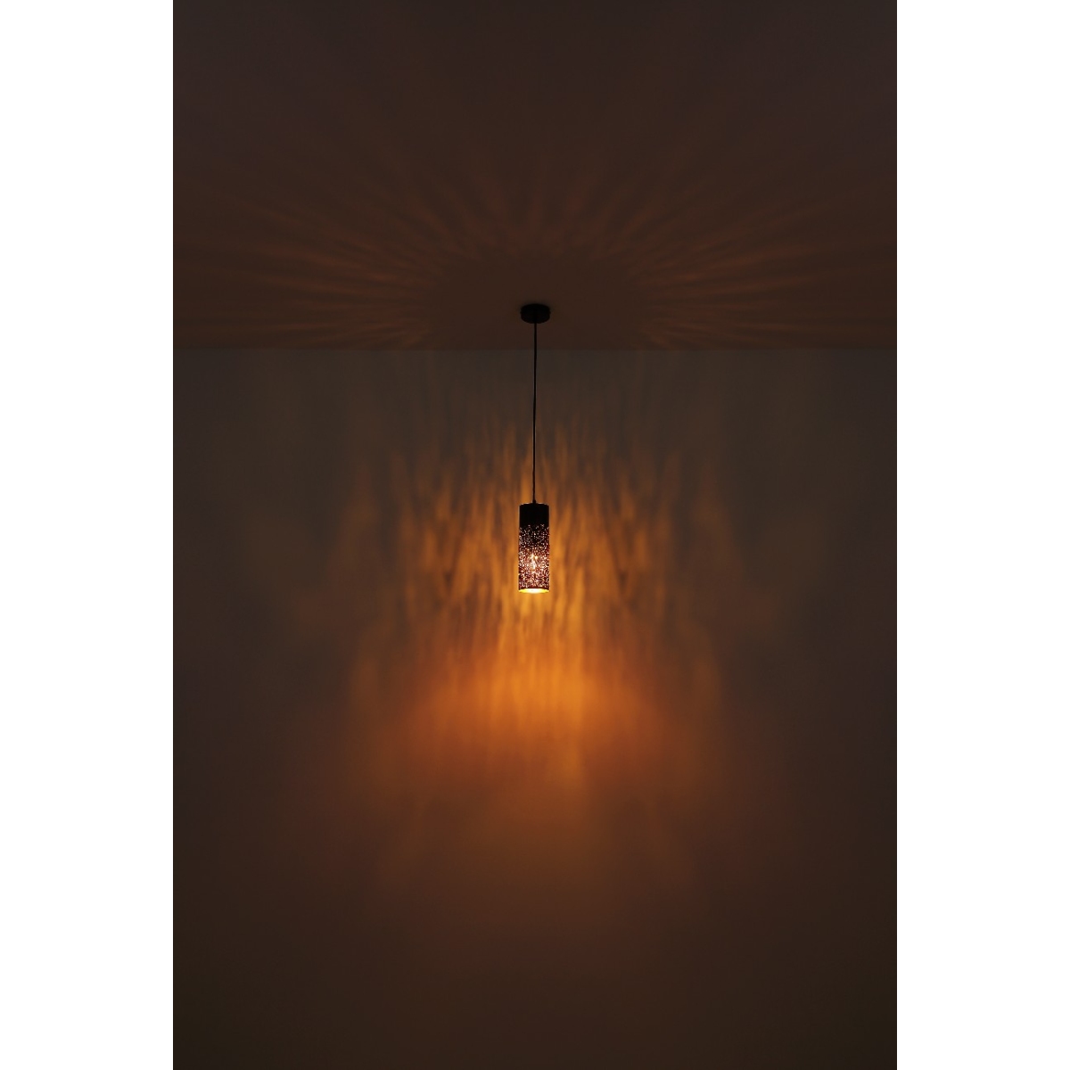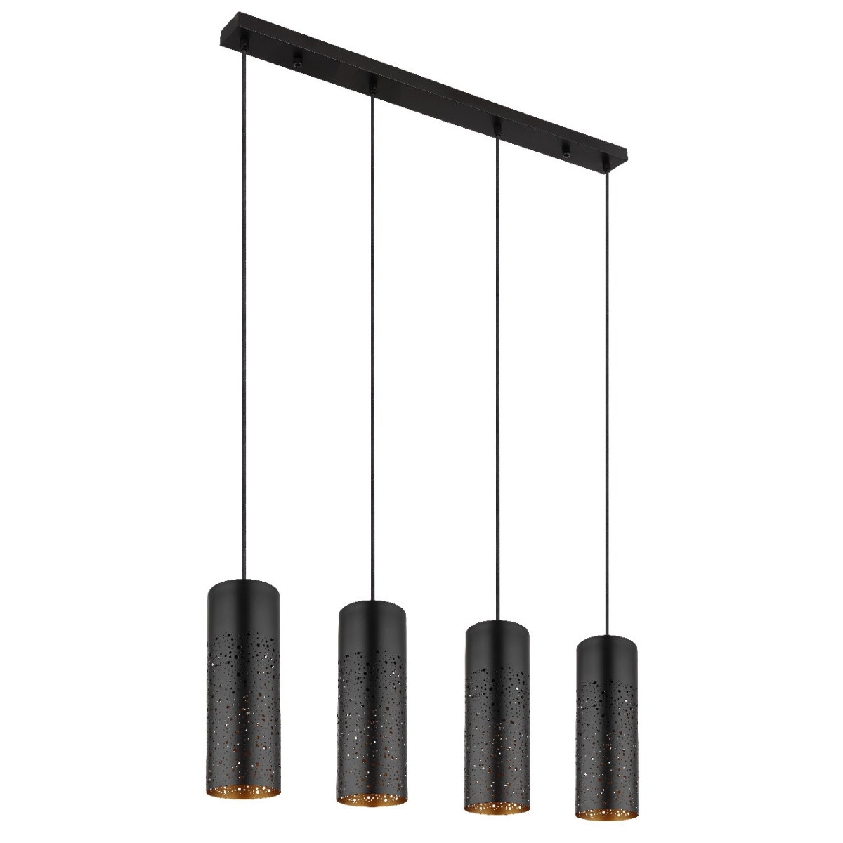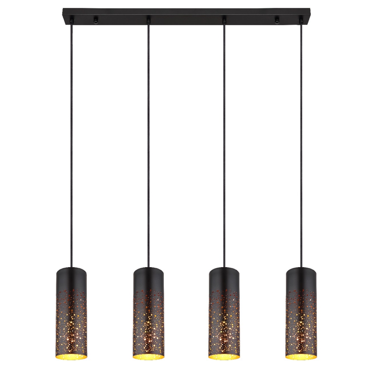 Ova visilica serije CROCKY izrađena je od crnog metala i cilindričnih stakala sa ukrasnim perforacijama (Ø 10). Četiri kabla dužine 1.5 m idu od plafonskog nosača dužine 80 cm, svaki sa grlom E27, koja su prekrivena oblikovanim abažurima. E27 grlo vam omogućava da sami odredite boju svetla i jačinu do maksimalne snage od 40W. Zbog dugovečnosti i uštede energije preporučujemo vam LED sijalice.