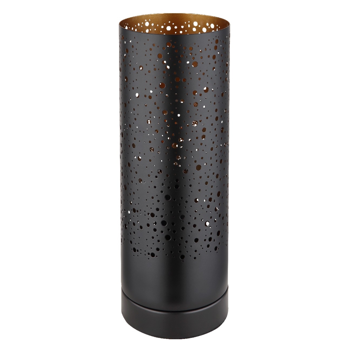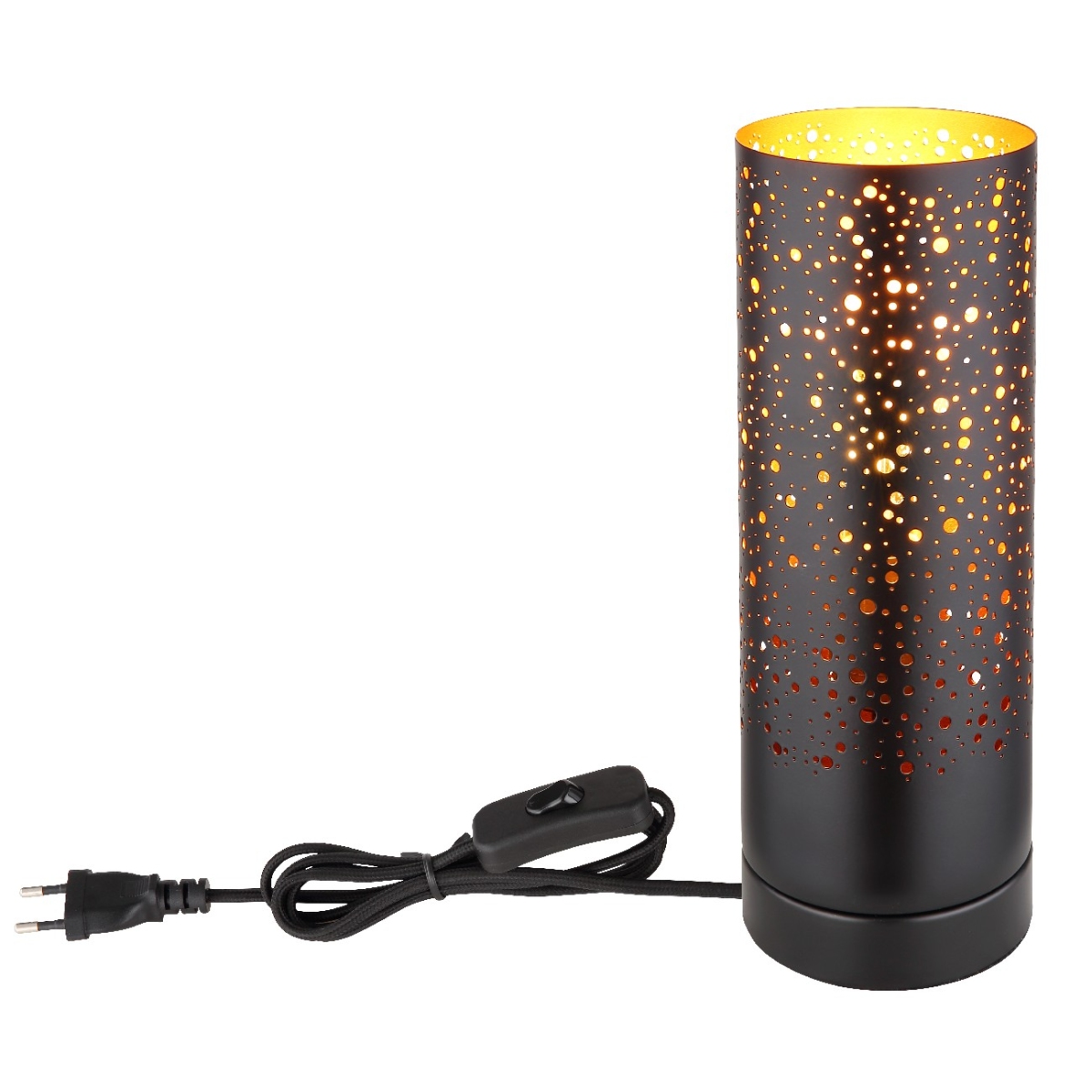 Ova stona lampa serije CROCKY izrađena je od crnog metala i cilindričnih stakala sa ukrasnim perforacijama. Grlo E27 vam omogućava da sami odredite boju svetla i jačinu do maksimalne snage od 40W. Zbog dugovečnosti i uštede energije preporučujemo vam LED sijalice.