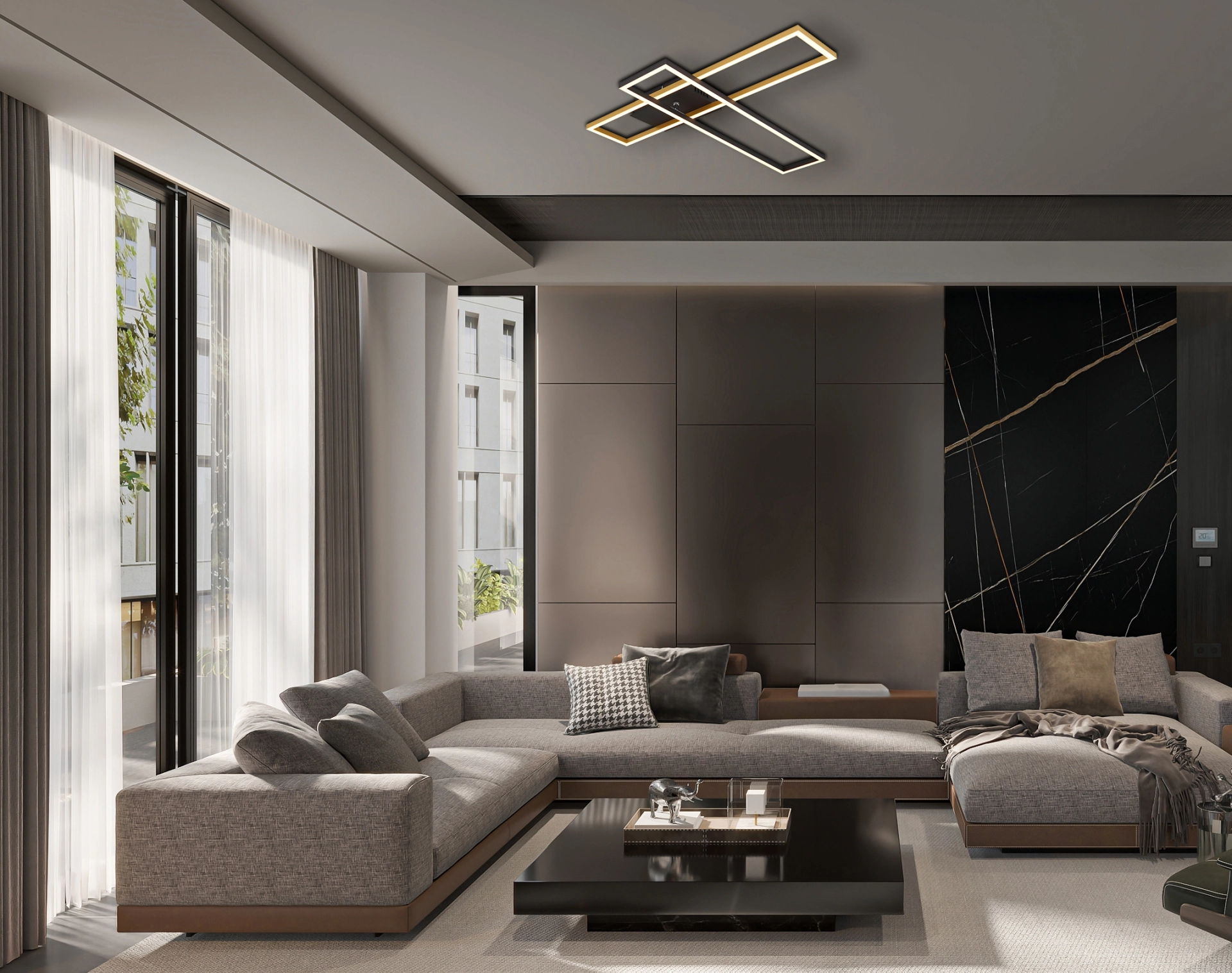 Otkrijte stilsku plafonsku lampu napravljenu od crnog mat metala, aluminijuma u crnoj i zlatnoj boji i plastike u opalnom izgledu. Sa dimenzijama 800x600x75 mm i pravougaonim dimenzijama 13×60 cm, ova lampa nudi moderan i elegantan dizajn. Plafonska lampa je već opremljena LED sijalicama snage 30 W i 230 V. One proizvode osvetljenost izvora od 3240 lm i izlaznu snagu od 1370 lm sa bojom svetlosti od 3000 K. Idealna za prostorije kao što su dnevna soba, trpezarija ili hodnik, ova svetiljka stvara prijatnu atmosferu. Naručite ovu visokokvalitetnu i energetski štedljivu plafonsku lampu sada i dozvolite sebi da se uverite u njen ekskluzivni dizajn i sjaj.