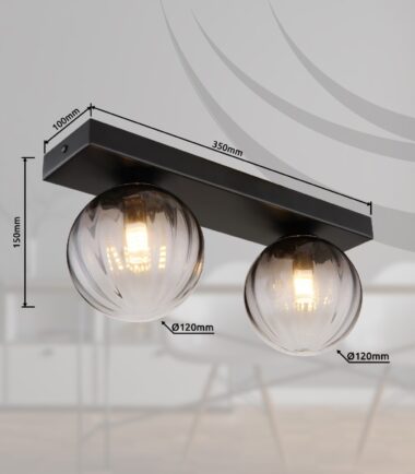 Zidna lampa serije DALLERTA, dugačka je 350 mm, široka 120 mm i visoka 150 mm. Napravljena je od crnog mat metala i stakla boje dima. Zidna lampa se jednostano i brzo montira. Isporučuje se bez sijalice. Potrebne su dve sijalice G9 LED 10W. Savršena je za dnevnu sobu, hodnik ili spavaću sobu.