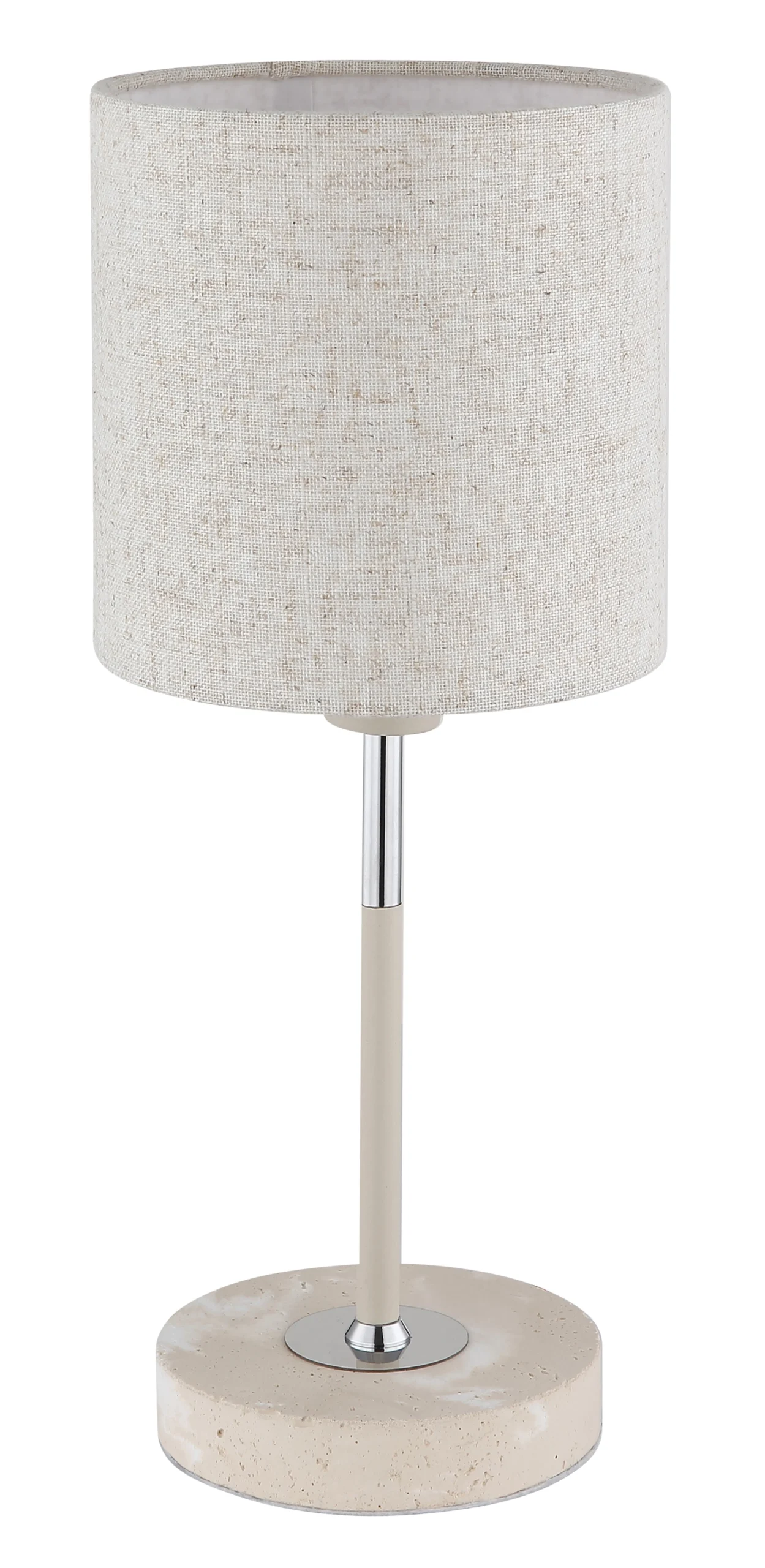 Stona lampa DELEON kombinuje tradicionalnu izradu sa modernim dizajnom. Okruglo telo napravljeno od mat metala boje peska stilski je upotpunjeno hromiranim detaljima i žutim travertinom. Tekstilni abažur krem boje pruža toplo, prijatno svetlo koje stvara ugodnu atmosferu u svakoj prostoriji. Sa prečnikom od 150 mm, lampa je kompaktna i savršeno se uklapa na bilo koji sto ili noćni sto. Praktični prekidač na kablu omogućava lako rukovanje. Snaga lumena je navedena bez sijalice E14, što vam daje fleksibilnost da izaberete željeni izvor svetlosti. DELEON je sinonim za visokokvalitetne materijale i tradicionalnu izradu osvetljenja – idealno za dodavanje elegantne i bezvremenske atmosfere vašem domu.