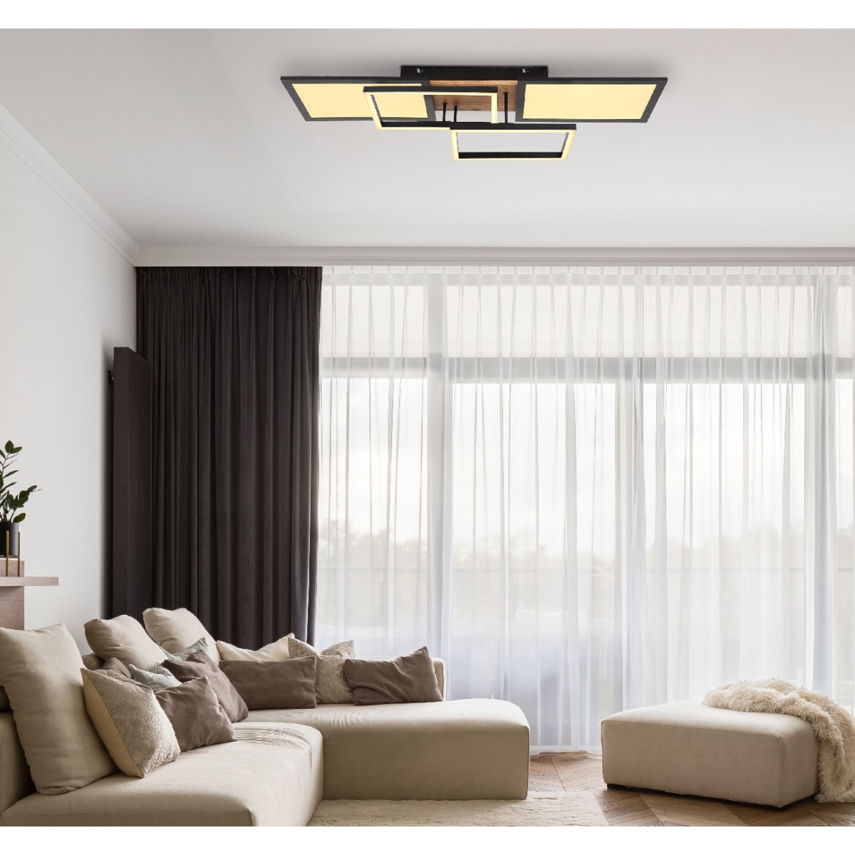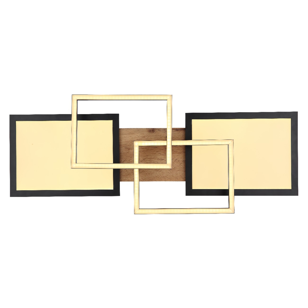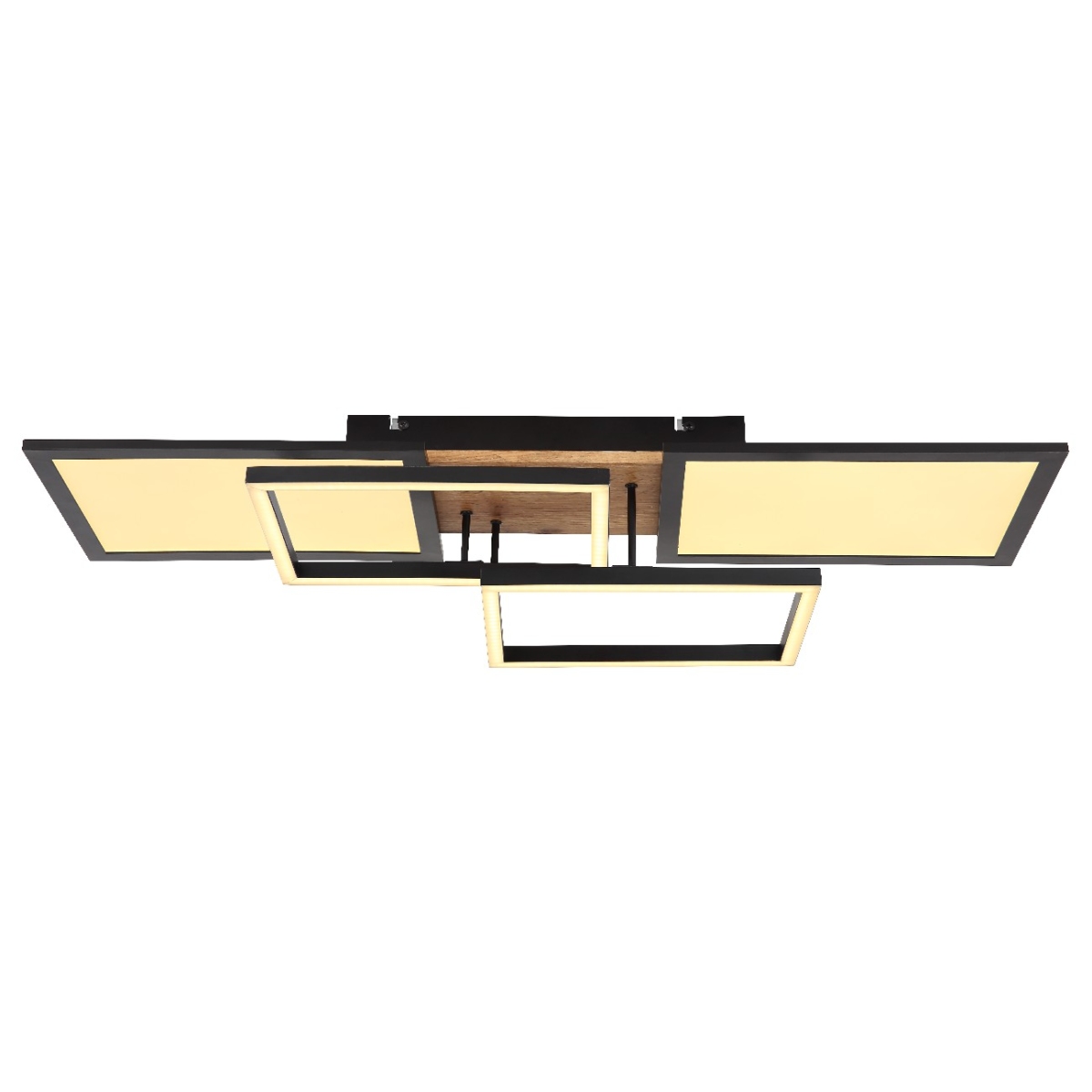 Ova prelepa plafonska lampa serije DENIS inspiriše sjajnim dizajnom. Četiri oblikovana pravougaona LED panela ukupne dužine i širine 70x28cm prodiru iz pravougaonog nosača sa plafona drvenog izgleda. Oni emituju 3000 Kelvina toplo belo svetlo i tako obezbeđuju prijatnu atmosferu.