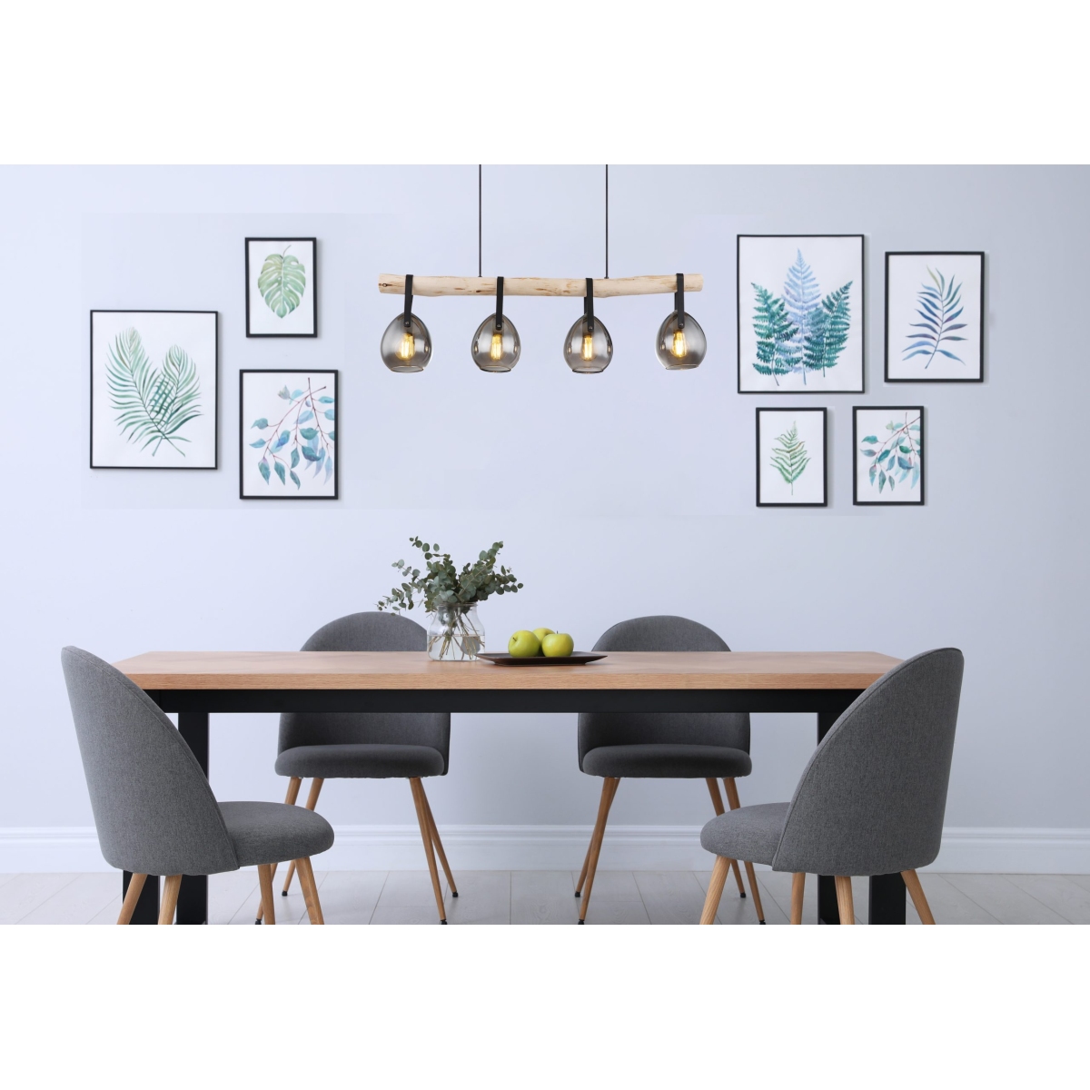 Uz ovu visilicu iz serije DIETHILD, možete biti sigurni u entuzijastične izglede u svom domu. Visilica je dugačka 100 cm sastoji se od drvene grane koja visi na dva kabla i opremljena je sa četiri zadimljene kugle u obliku kapi. One mogu biti opremljene E27 sijalicama po vašem izboru, što vam daje mogućnost da pojedinačno odredite laganu boju i jačinu. Sa nekoliko modela iste serije možete upotpuniti celokupnu sliku u svom enterijeru i napraviti elegantan ambijent.