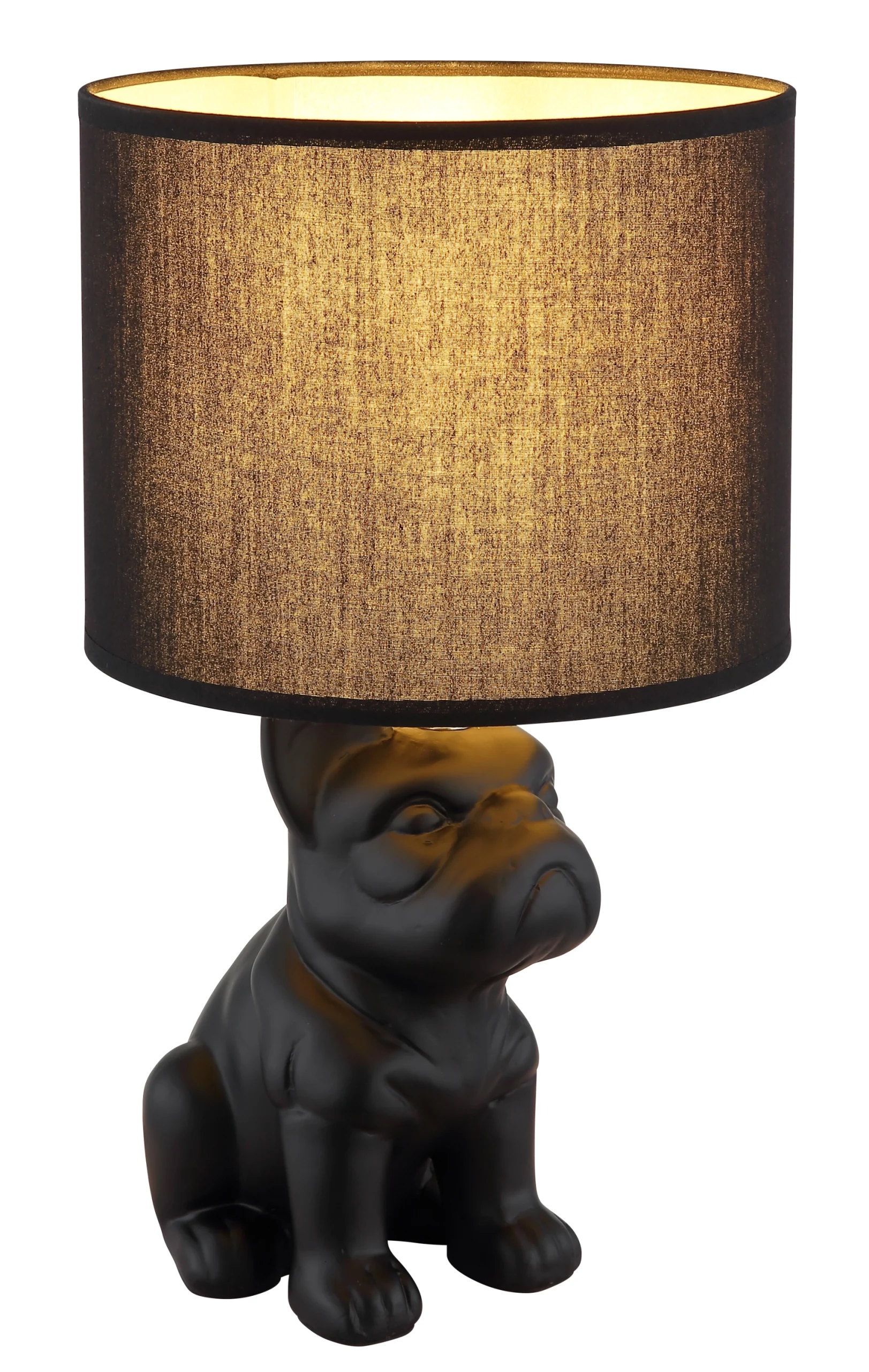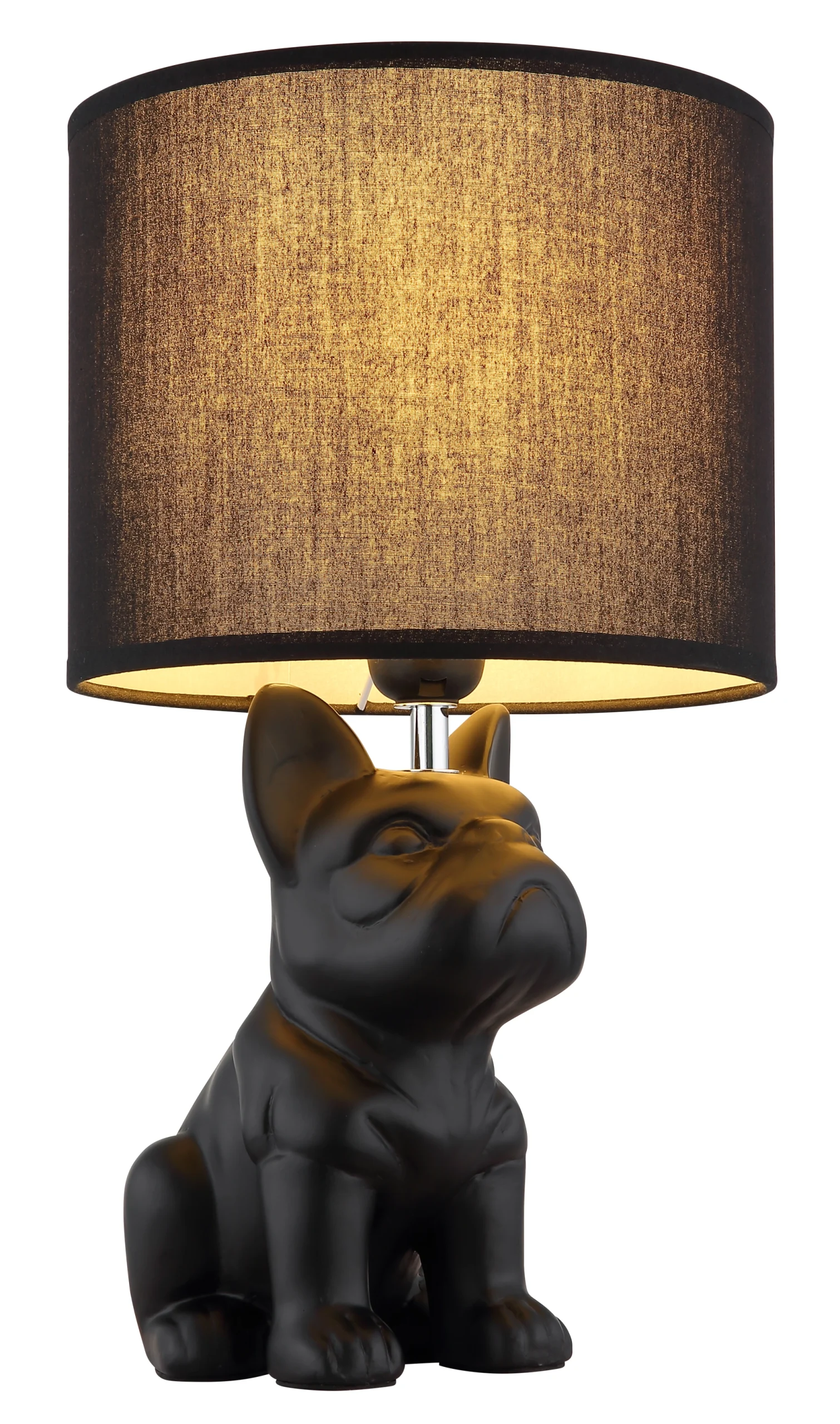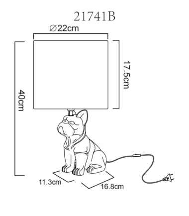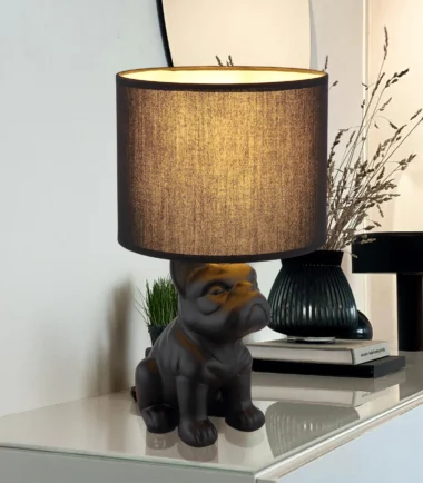 Stona lampa DOGO kombinuje razigran šarm sa stilskim dizajnom. Telo, oblikovano kao sedeći francuski buldog i napravljeno od mat crne keramike, privlači pažnju i dodaje poseban dodir svakoj prostoriji. Okrugli, crni abažur od tkanine stvara prijatno prigušenu atmosferu osvetljenja i ističe elegantan izgled lampe. Bilo da je na noćnom stočiću, u dnevnoj sobi ili u hodniku, DOGO nije samo izvor svetlosti već i dekorativni element. Opremljena prekidačem na kablu, lampa se može praktično paliti i gasiti. Opremljena je sijalicom E27 (nije uključena), što vam omogućava da individualno podesite boju i intenzitet svetlosti. DOGO unosi životinjski šarm i stilsku udobnost u vaš dom.