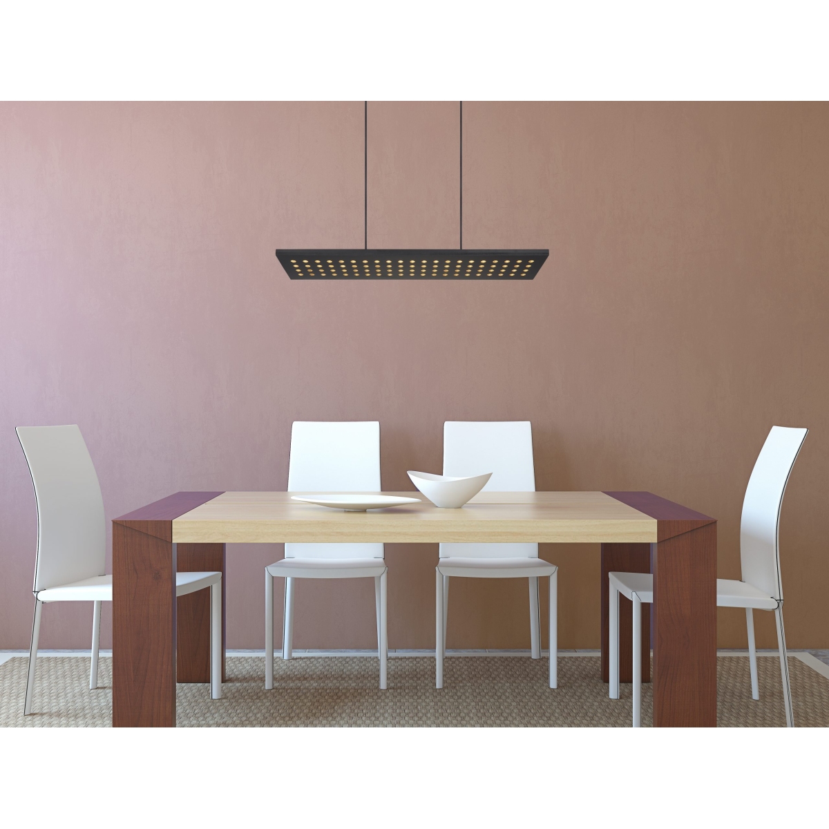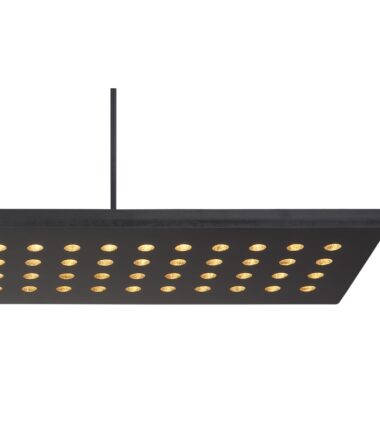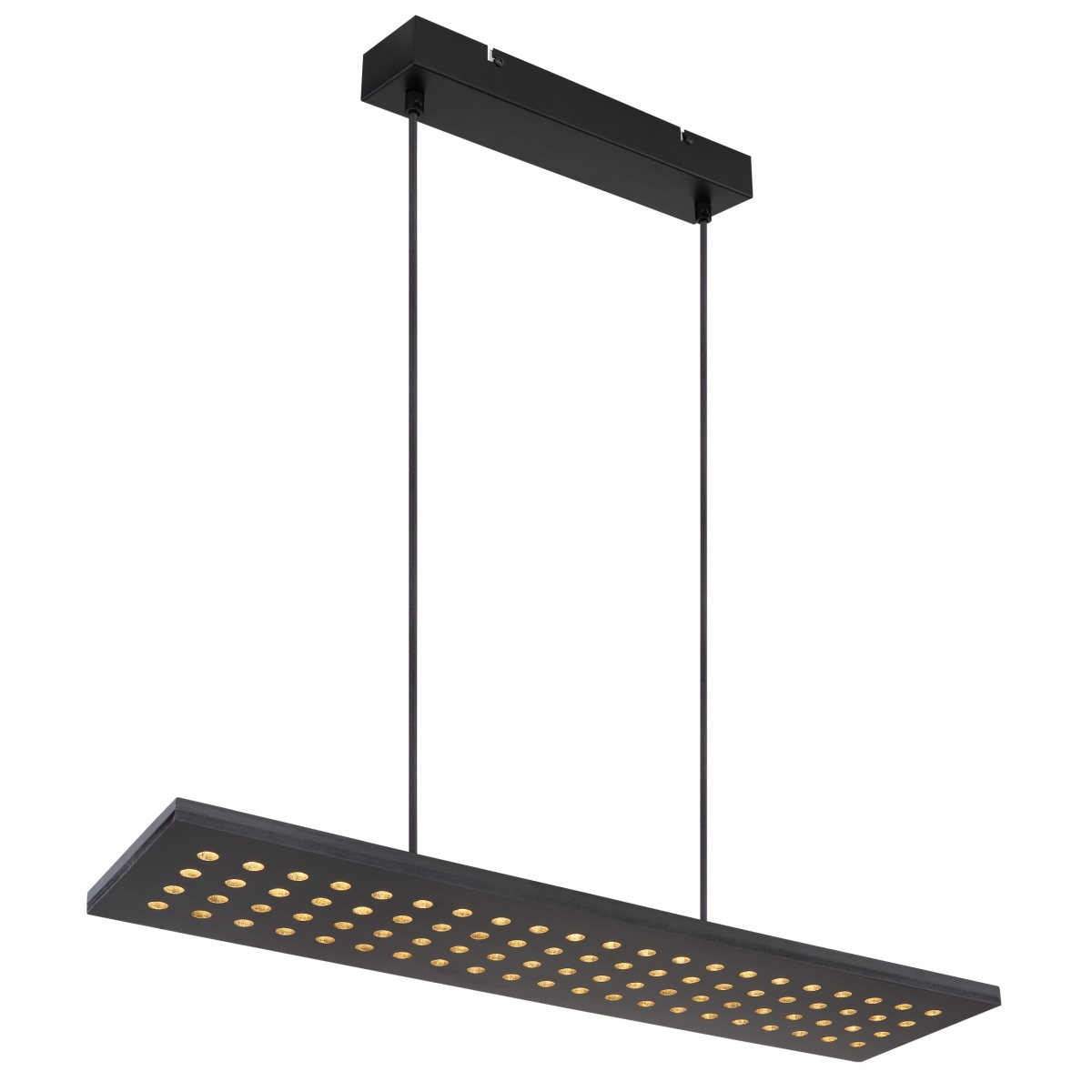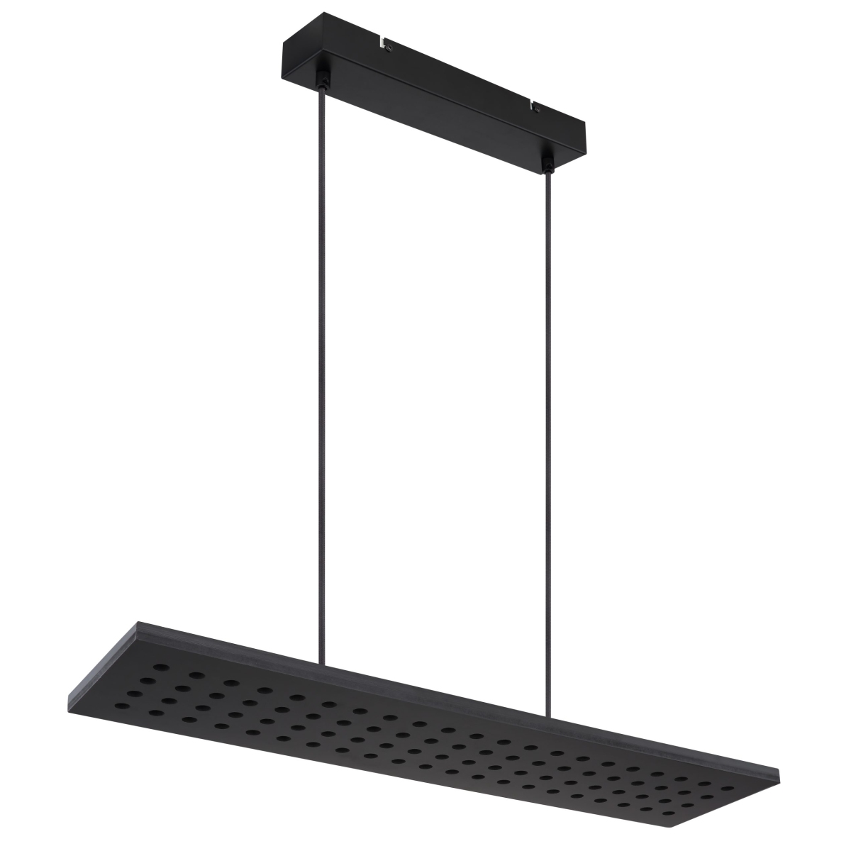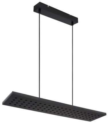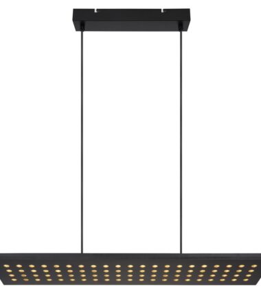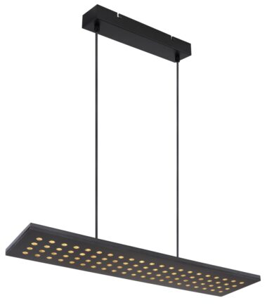 Ova visilica iz serije DOLORES (80×20 cm) je divan dodatak vašem enterijeru. Sastoji se od crne drvene ploče, koja visi sa plafona na dva kabla široka do 120 cm i obezbeđena je brojnim okruglim detaljima. Zahvaljujući tome, uključene LED sijalice obezbeđuju 2000 lumena jakog svetla prijatne lagane boje od 3000 Kelvina (topla bela). Ostali artikli iste serije mogu da upotpune celokupnu sliku u vaša četiri zida.
