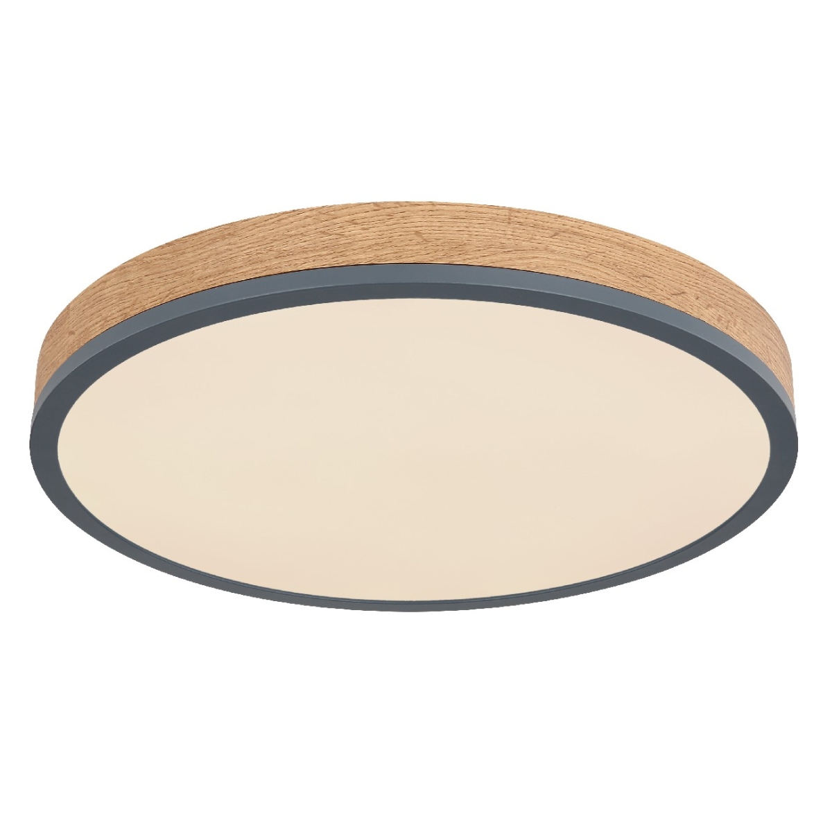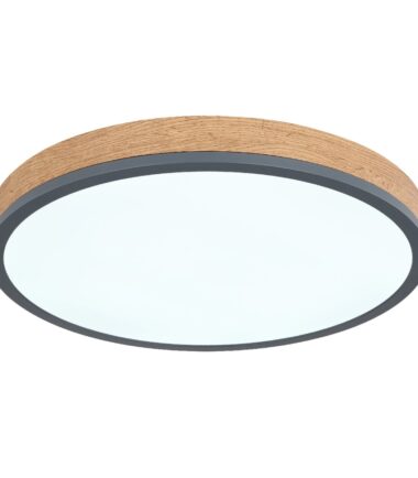 Ova okrugla plafonska lampa (Ø45cm) serije DORO inspiriše svojim funkcijama. U drvenom ramu se nalazi LED panel koji se može zatamniti i fiksirati pomoću daljinskog upravljača u nivou svetlosti 3000 Kelvina topla bela, 4500 Kelvina neutralna i 6000 Kelvina hladno bela. Pomoću tajmera lampa se takođe može isključiti i ima funkciju noćnog svetla, koja pruža prijatno svetlo. Funkcija memorije vam omogućava da zadržite poslednju korišćenu postavku.
