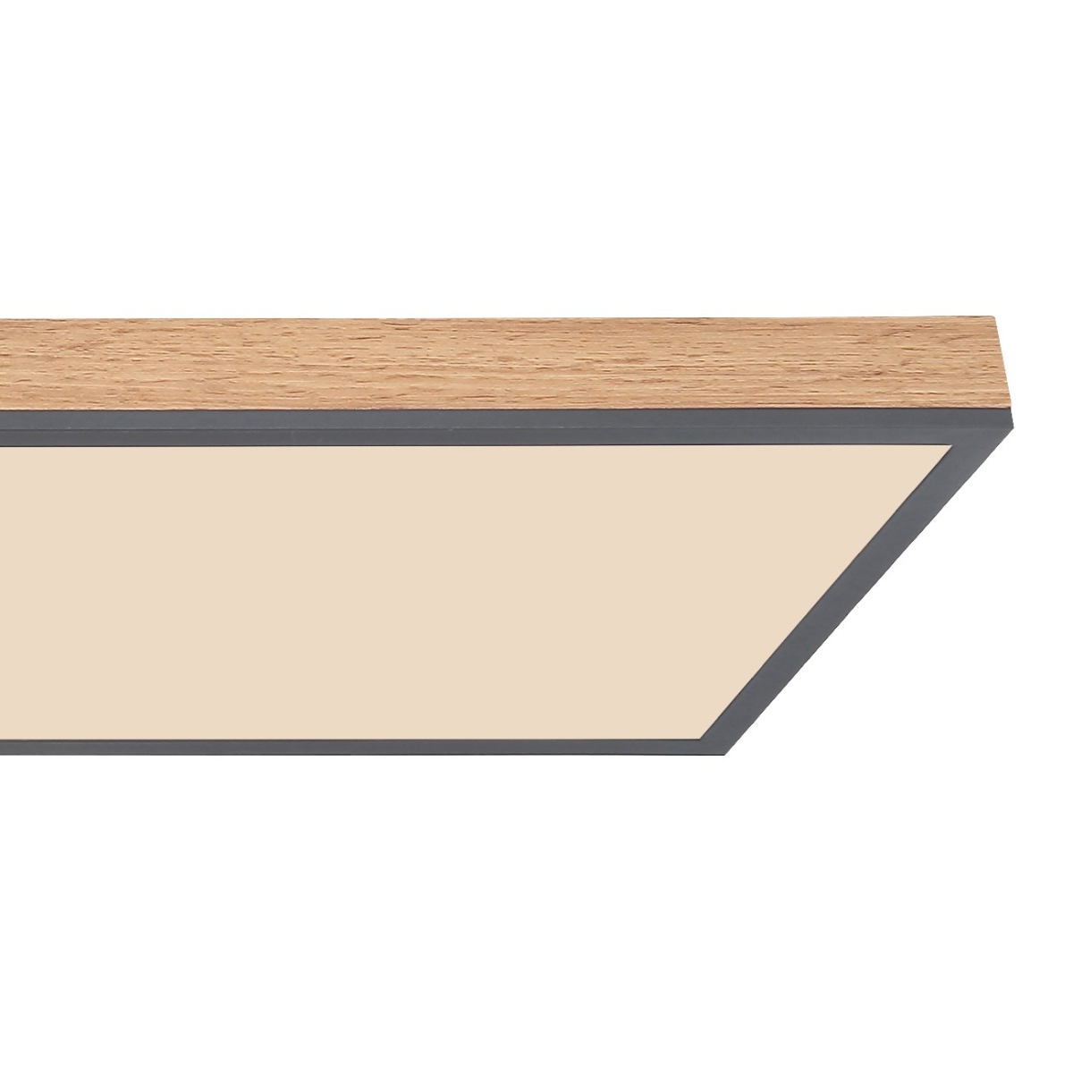 Ova plafonska lampa iz serije DORO je predivan dodatak vašem enterijeru. Sastoji se od pravougaonog MDF rama nalik drvetu (120×30 cm), koji je obezbeđen aluminijumom u boji grafita. Plafonska lampa ima LED sijalice, koje su prekrivene opalnim akrilom. One obezbeđuju 2250 lumena jake svetlosti. Uz pomoć obezbeđenog daljinskog upravljača, možete ne samo da prigušite plafonsko svetlo, već i pojedinačno da podesite boju svetla u nekoliko faza između 2700 Kelvina (toplo belo) i 6000 Kelvina (hladno belo) i takođe imate funkciju noćnog svetla. Sa ostalim modelima iste serije možete postaviti elegantne akcente u svoja četiri zida i upotpuniti celokupnu sliku.