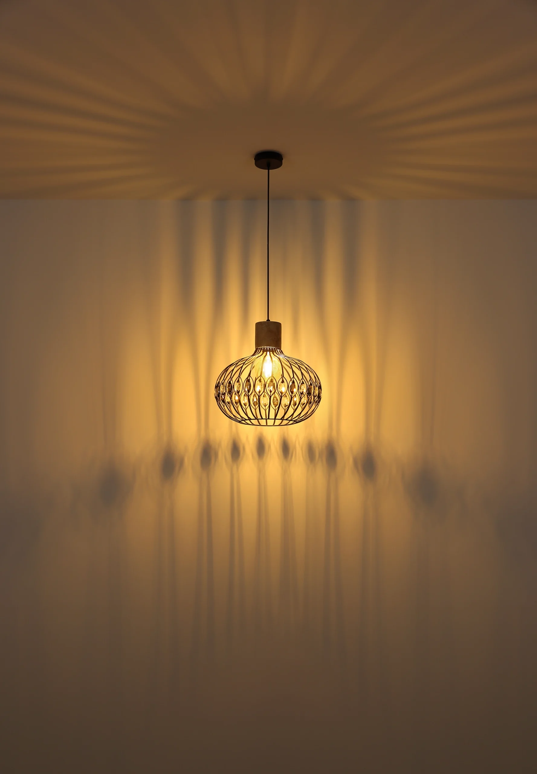 Viseća lampa DORTHY kombinuje stilski vintage dizajn sa visokokvalitetnim materijalima i elegantan je ukras za vaš dom. Sa svojim okruglim abažurom (Ø 380 mm) i harmoničnom mešavinom mat crnog metala i sivog travertina, unosi posebnu estetiku u svaku prostoriju. Metalni abažur u mat crnoj boji ukrašen je elegantnim K5 kristalima u dimljenim i bistrim bojama, koji pružaju briljantne refleksije svetlosti i daju prostoriji toplu, ugodnu atmosferu. Bilo da se nalazi u trpezariji, dnevnoj sobi ili hodniku – DORTHY postavlja stilske akcente i savršeno se uklapa u moderne i klasične stilove nameštaja. Lampa je opremljena E27 grlom (bez sijalica), tako da možete kreirati raspoloženje osvetljenja po svojoj želji. Ova viseća lampa impresionira svojom bezvremenskom elegancijom, visokokvalitetnom izradom i šarmantnom harizmom – savršena za svakoga ko traži karakter i stil u svom osvetljenju.