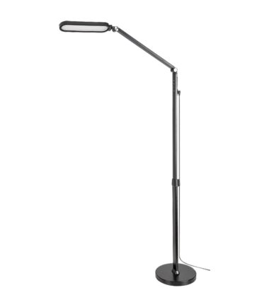 DRACO stona i/ili podna lampa modernog stila biće praktičan i svestran deo nameštaja vaše dnevne sobe ili radne sobe. Zahvaljujući svojoj fleksibilnoj ruci, ovaj izuzetan model se može koristiti kao podna ili stona lampa prema vašim potrebama. Crno metalno telo je upotpunjeno belim plastičnim abažurom, a svetlo stoji na okrugloj dekorativnoj osnovi. Ugrađeni LED izvor svetlosti ima snagu od 13W, svetlosni tok od 790 lumena i životni vek od 20.000 sati. Temperatura boje DRACO lampe može se podesiti u pet koraka između 3.000–6.000K, tj. može da emituje toplu, prirodnu ili hladnu belu svetlost. Osvetljenost se takođe može podesiti u pet koraka – slično kao i temperatura boje – pomoću prekidača na dodir. Dodatna dodatna funkcija je memorijska funkcija. Visina DRACO stolne/podne lampe je 1.400mm, prečnik je 210mm, dužina kabla je 1.500mm.