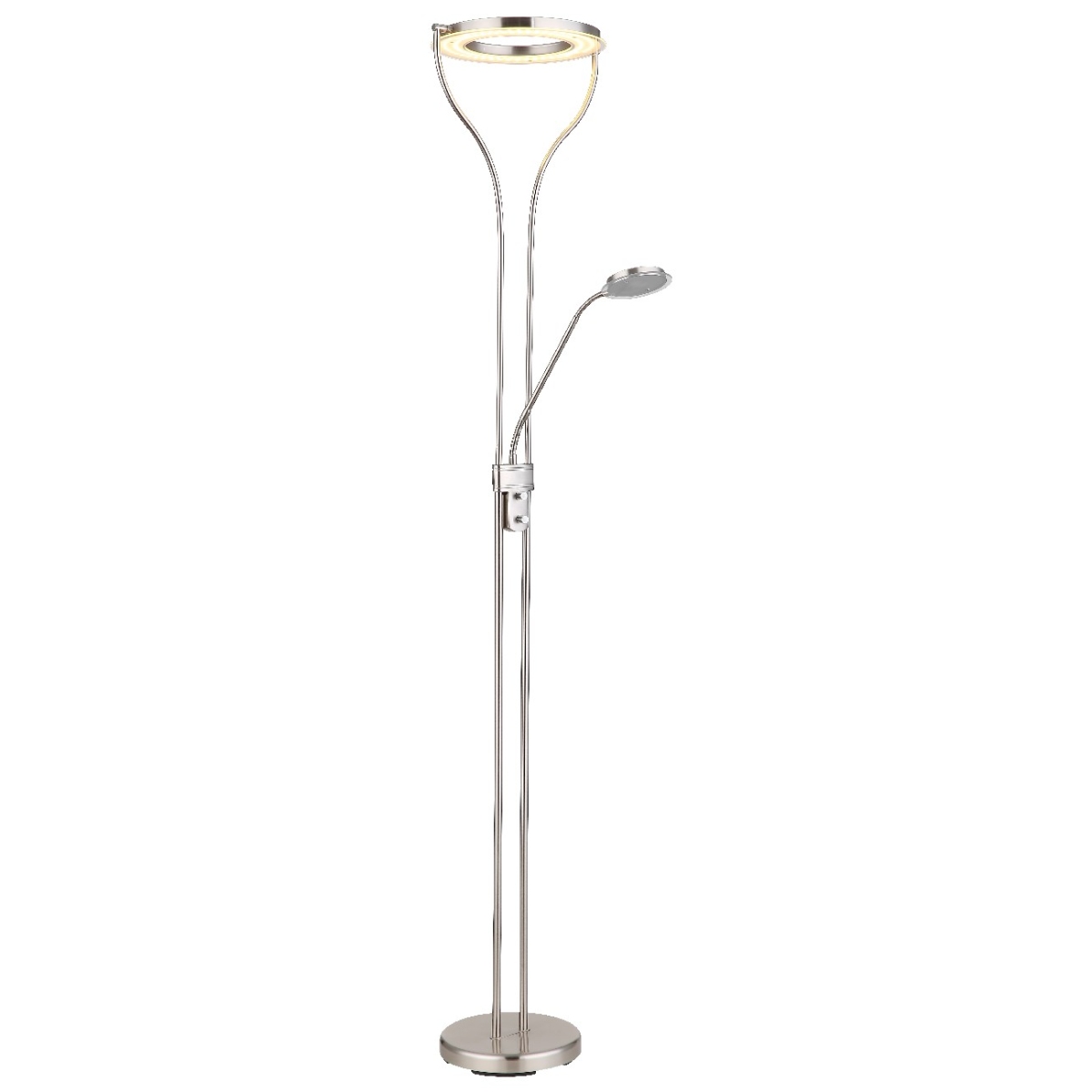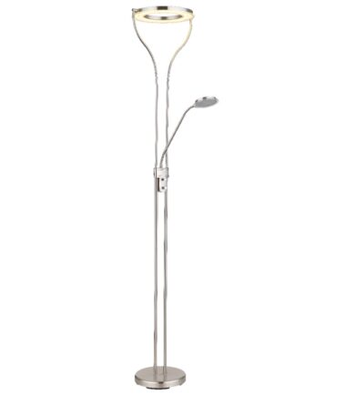 Postavite novi detalj u vašoj dnevnoj sobi, sa ovom podnom lampom EBRO serije, i uverite se u njenu blistavost i harizmu. Lampa je napravljena od nikla, a staklo od satiniranog akrila. Da biste bili sigurni da imate savršeno osvetljenje tokom čitanja, svetlo za čitanje je opremljeno fleksibilnom granom. Savršeno osvetljenje u prostoriji obezbeđeno je reflektorm, koji se može rotirati po želji. 3000 Kelvina topla bela svetlost stvara prijatnu atmosferu.