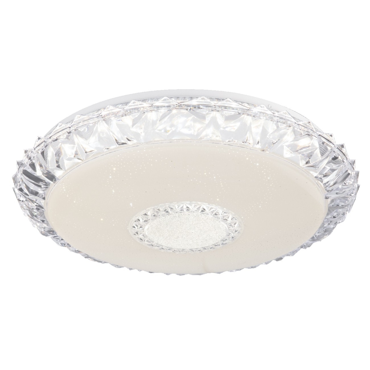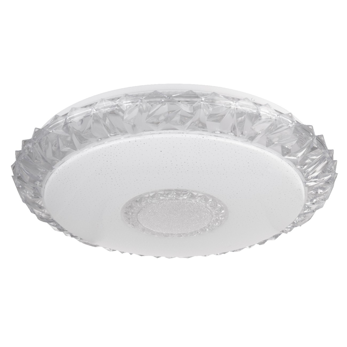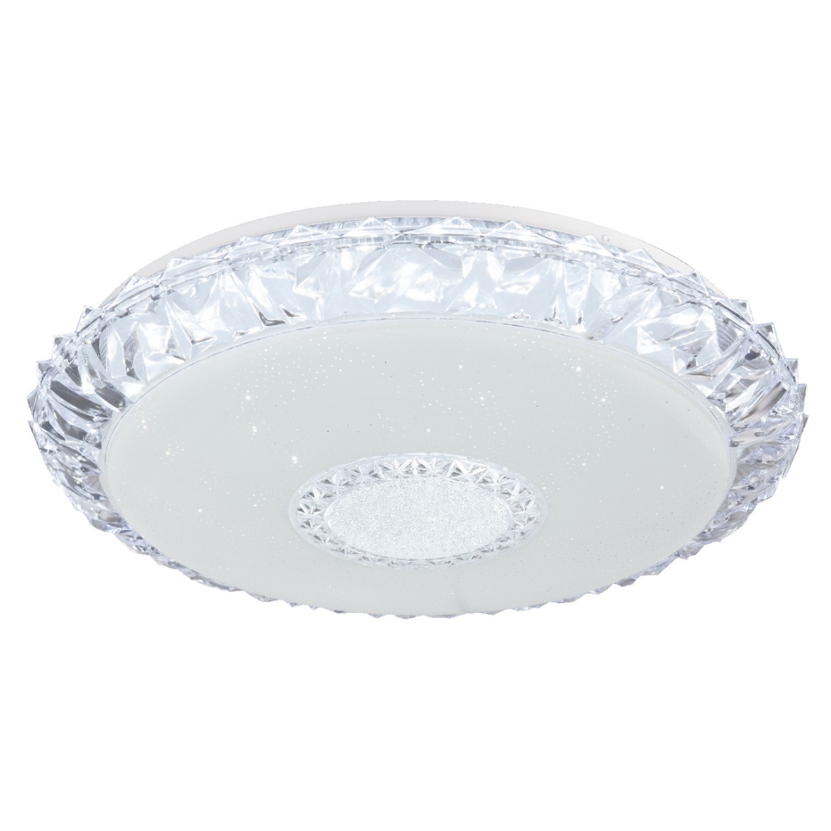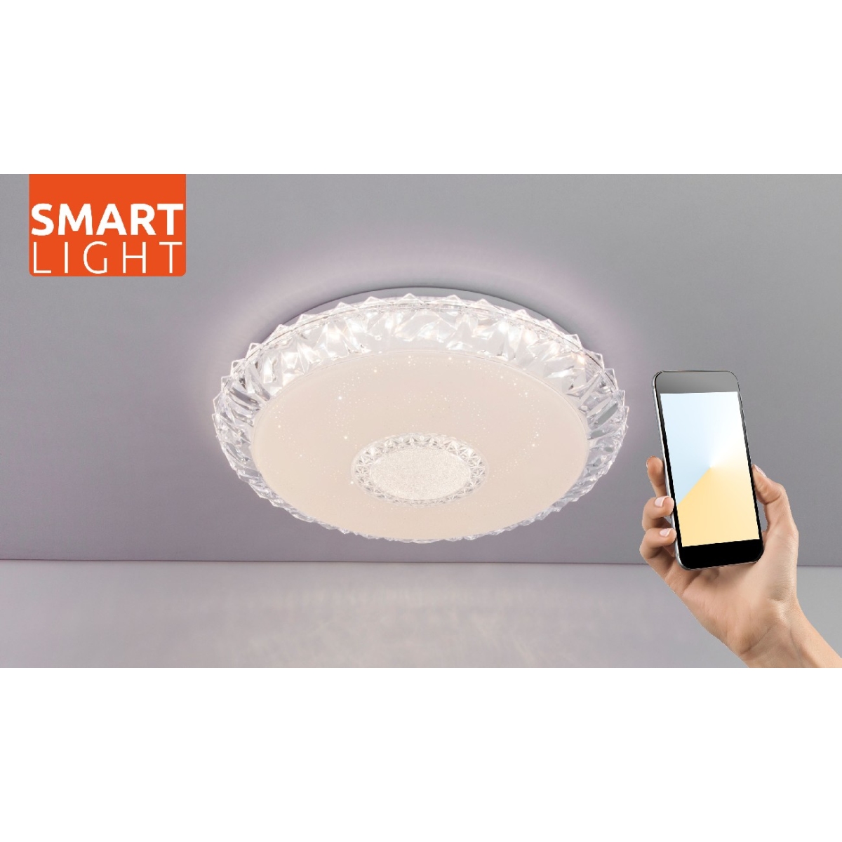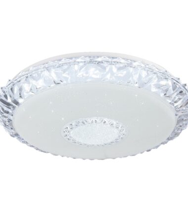 Ova okrugla plafonska lampa EDDIE (Ø 50 cm) napravljena od belog metala sa svetlucavim dekorom i providnim akrilnim kristalima, ističe se svojim performansama i funkcionalnošću. Pomoću uključenog daljinskog upravljača i CCT funkcije, svetlosna boja se može regulisati i fiksirati u nekoliko faza između prijatnog toplo belog svetla 3000K i 6500K hladno belog svetla. Sa uključenom LED sijalicom od 40 vati, ova plafonska lampa obezbeđuje maksimalno 3050 lumena jako svetlo, može se zatamniti po želji i prilagoditi dotičnim situacijama. Ova Smartlight lampa je jednostavna za rad pomoću Tuya Smart aplikacije (Android TM/IOS). Kontrola glasa je laka sa Amazon Echo Tm i Google Home.