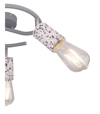 Reflektor sa tri grla ima ekskluzivni dizajn. Tri okvira su pričvršćena za E oblik i okruženi su sa tri sloja u izgledu teraco kamena. Ova lampa prečnika 25cm savršeno se uklapa u vašu spavaću sobu, hodnik ili dnevnu sobu. Zbog slobodnog izbora sijalica (3x E27 / max. 40W) možete sami odrediti svetli intenzitet i boju svetla ove unutrašnje lampe. Zbog njihove dugovečnosti i uštede energije preporučujemo LED sijalice. Drugi modeli u ovoj seriji vam omogućavaju da dodatno ulepšate svoj životni prostor.