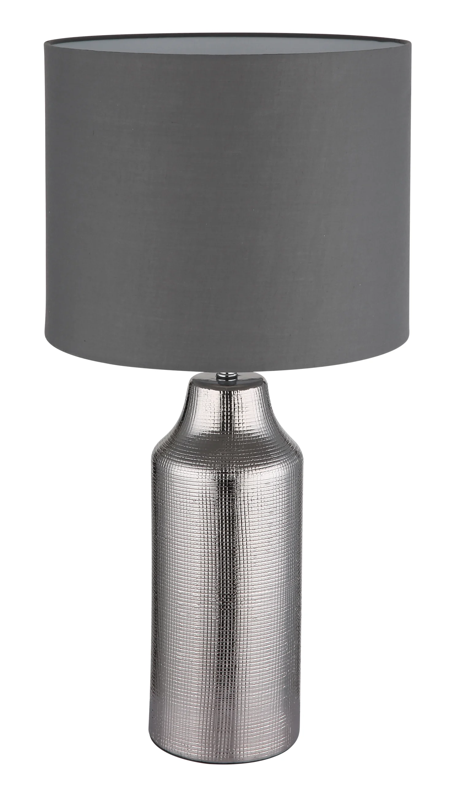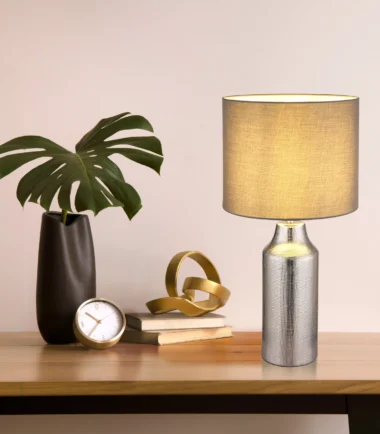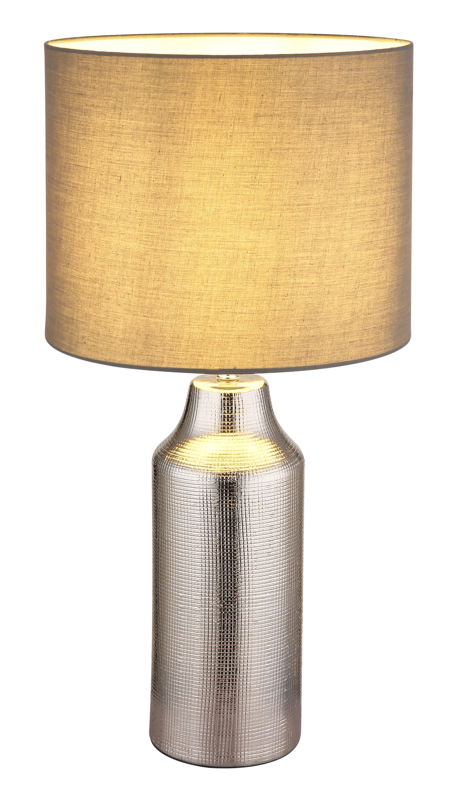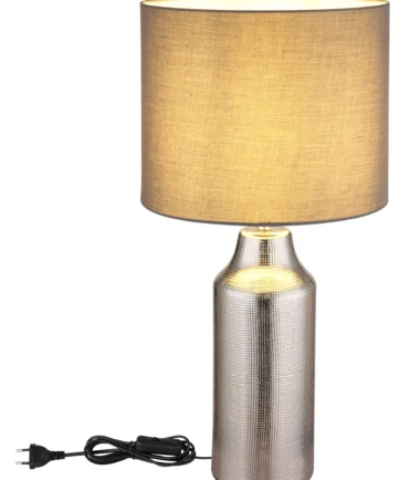Stona lampa ELDEN impresionira svojim elegantnim dizajnom i bezvremenskom estetikom. Okruglo postolje napravljeno od srebrne keramike daje lampi moderan i luksuzan izgled, dok cilindrični abažur od sivog tekstila omogućava nežnu i ravnomernu raspodelu svetlosti. Sa prečnikom od Ø:305 mm, ELDEN pruža izdašno osvetljenje koje je idealno za različite prostorije kao što su dnevne sobe, spavaće sobe ili kancelarije. Praktični prekidač na kablu omogućava lako upravljanje izvorom svetlosti, koji se nalazi u grlu E27. Kombinacija srebrnog kućišta i sivog abažura od tkanine čini stonu lampu stilskim dodatkom koji se besprekorno uklapa u svaki moderni enterijer i istovremeno obezbeđuje prijatne uslove osvetljenja.