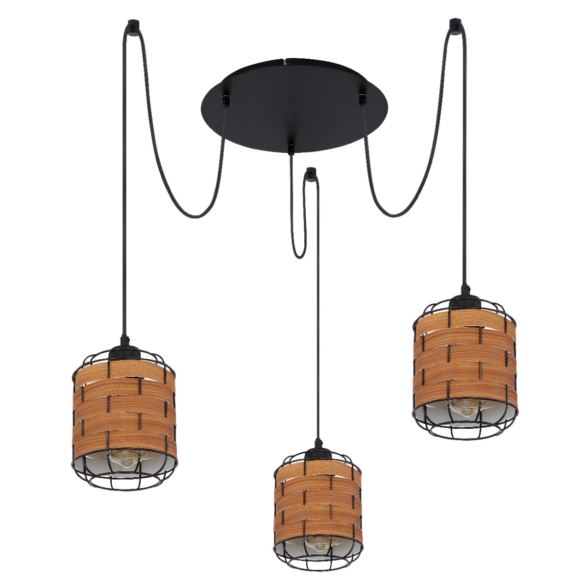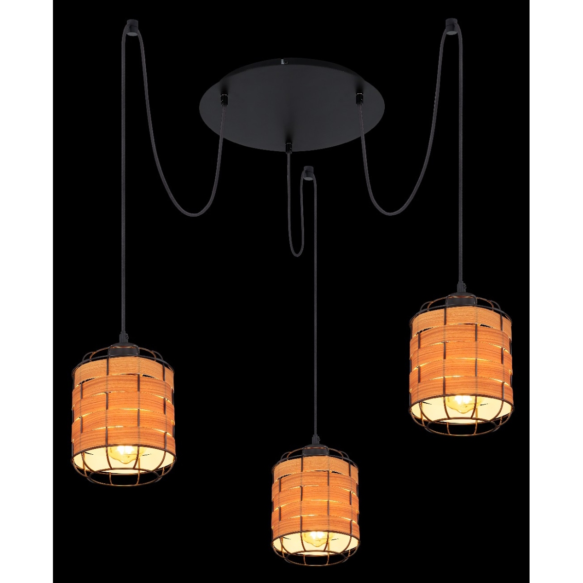 Ova sjajna visilica serije ELMAR inspiriše svojim prelepim dizajnom i postaje centar vaših soba. Od tri crna mat visinski podesiva tekstilna kabla maksimalne dužine 2 metra prodire E27 grlo koja može biti opremljeno sijalicom po vašem izboru, do maksimalne snage od 40 vati. Grla E27 su obložena okruglim metalnom mrežastim abažurom sa plastičnim umecima i tako lampi daju pravi dodir.