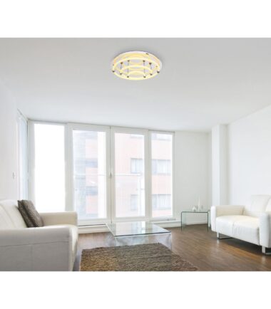 Elegantna i moderna, LED plafonska lampa serije EPI ističe se svojim karakteristikama. Može se koristiti dnevoj sobi, trpezariji ili predsoblju, lampa sija prijatno toplom belom svetlošću. Hromirano ogledalo zaokružuje elegantan dizajn i čini lampu veoma privlačnom čak i kada je isključena. LED lampa od 54 vati i 3240 lumena ima radni vek od 20.000 sati.