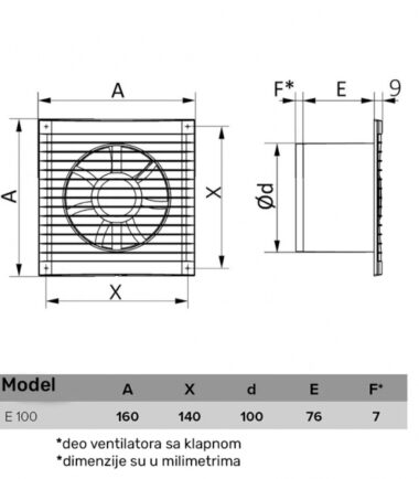 | Dimenzije otvora za ugradnju | |