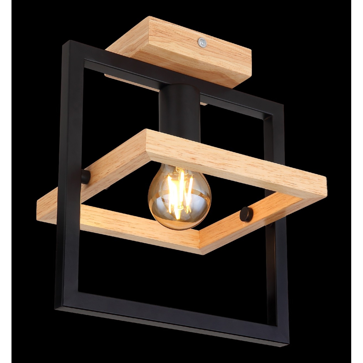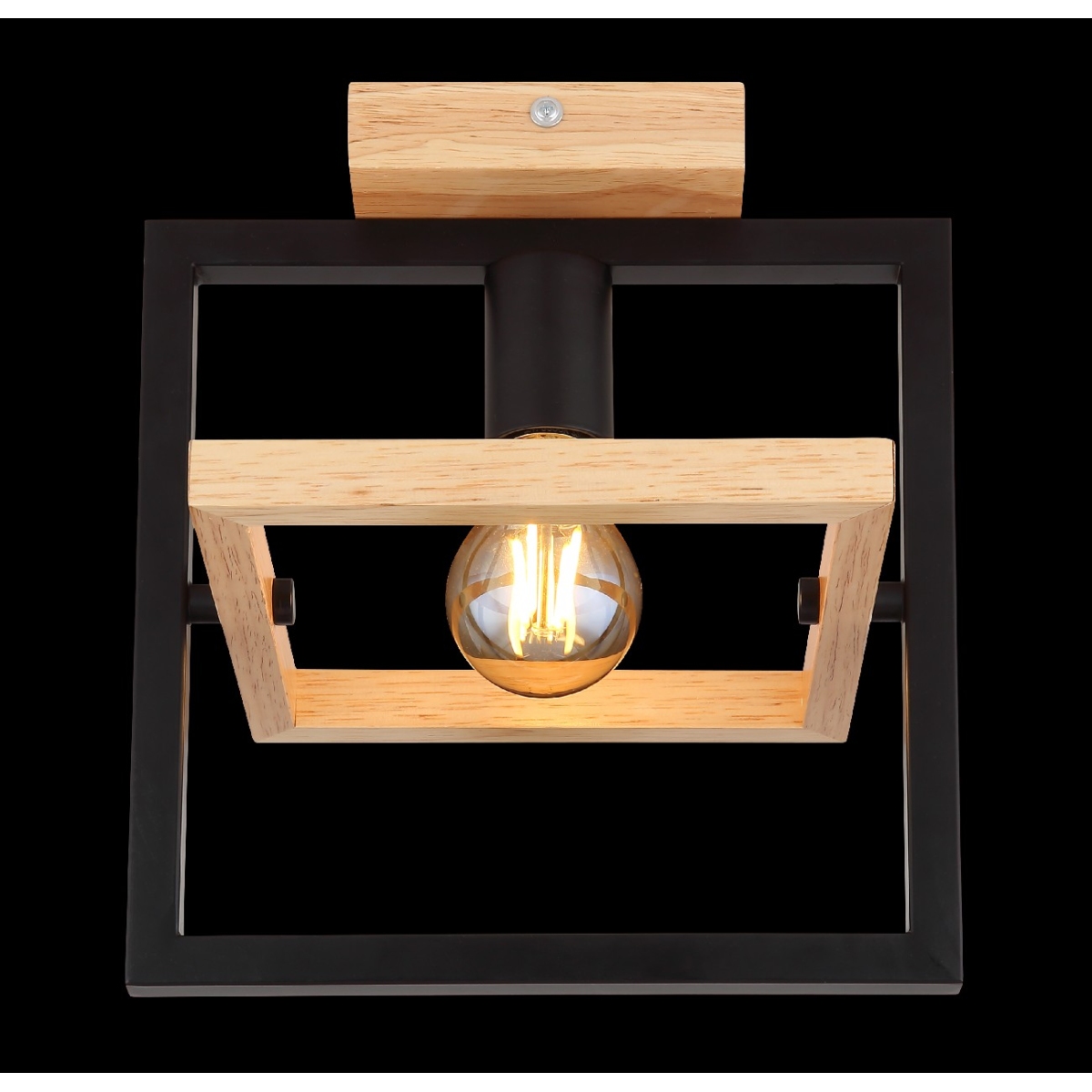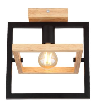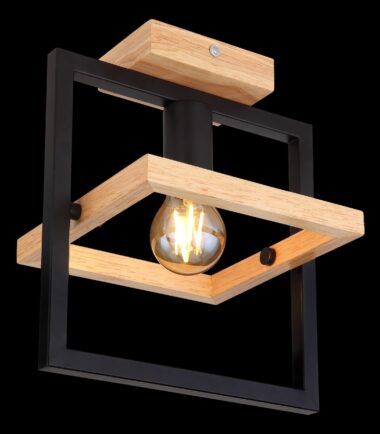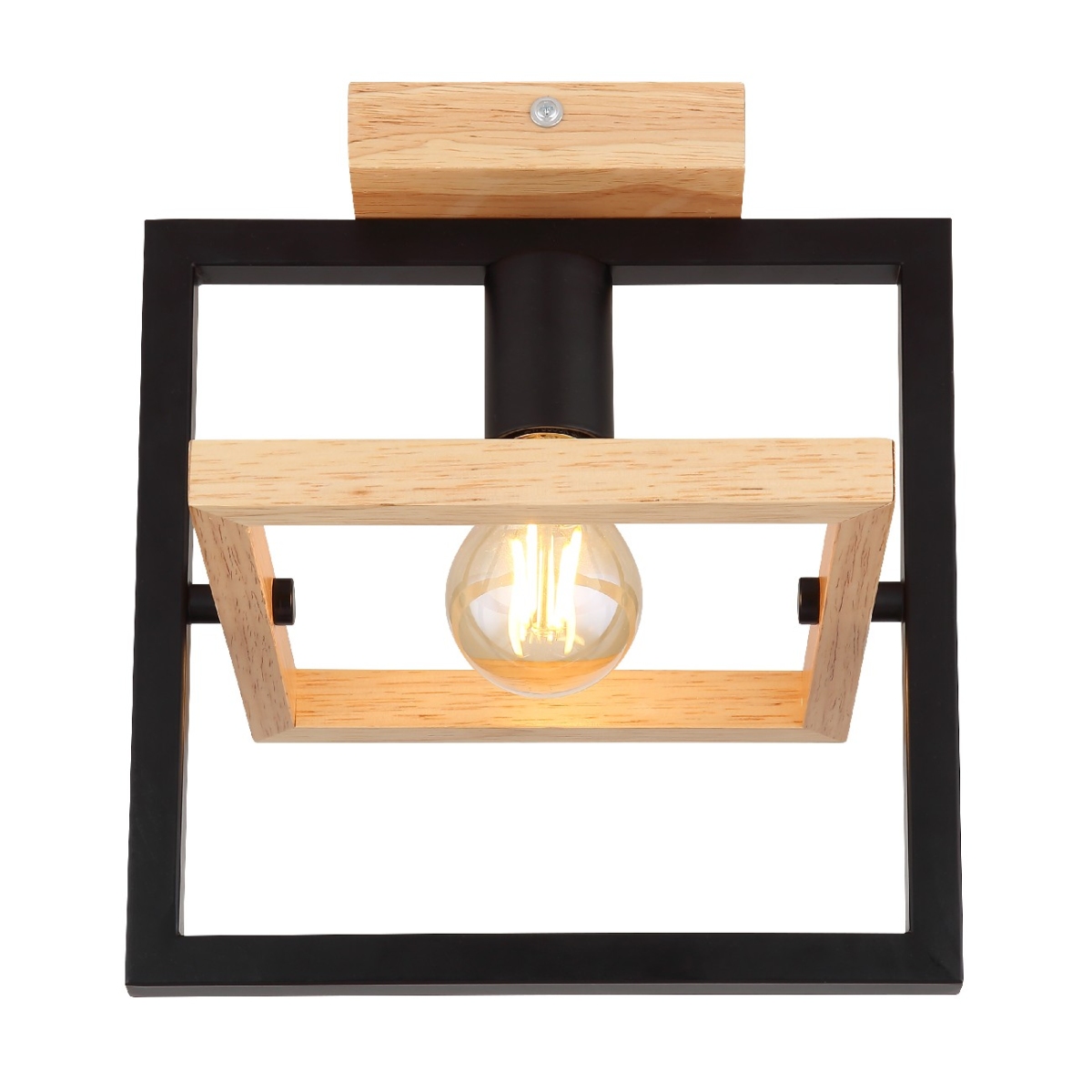 Ova izuzetno moderna plafonska lampa iz serije ERICA impresionira svojim sjajnim dizajnom. Ona se sastoji od crnog mat pravougaonog metalnog okvira dužine 25cm na kojem se nalazi E27 grlo i okružen je drugim pokretnim pravougaonikom napravljenim od drveta širine 20cm. Grlo E27 vam omogućava da slobodno odaberete sijalice do maksimalne snage od 40 vati.