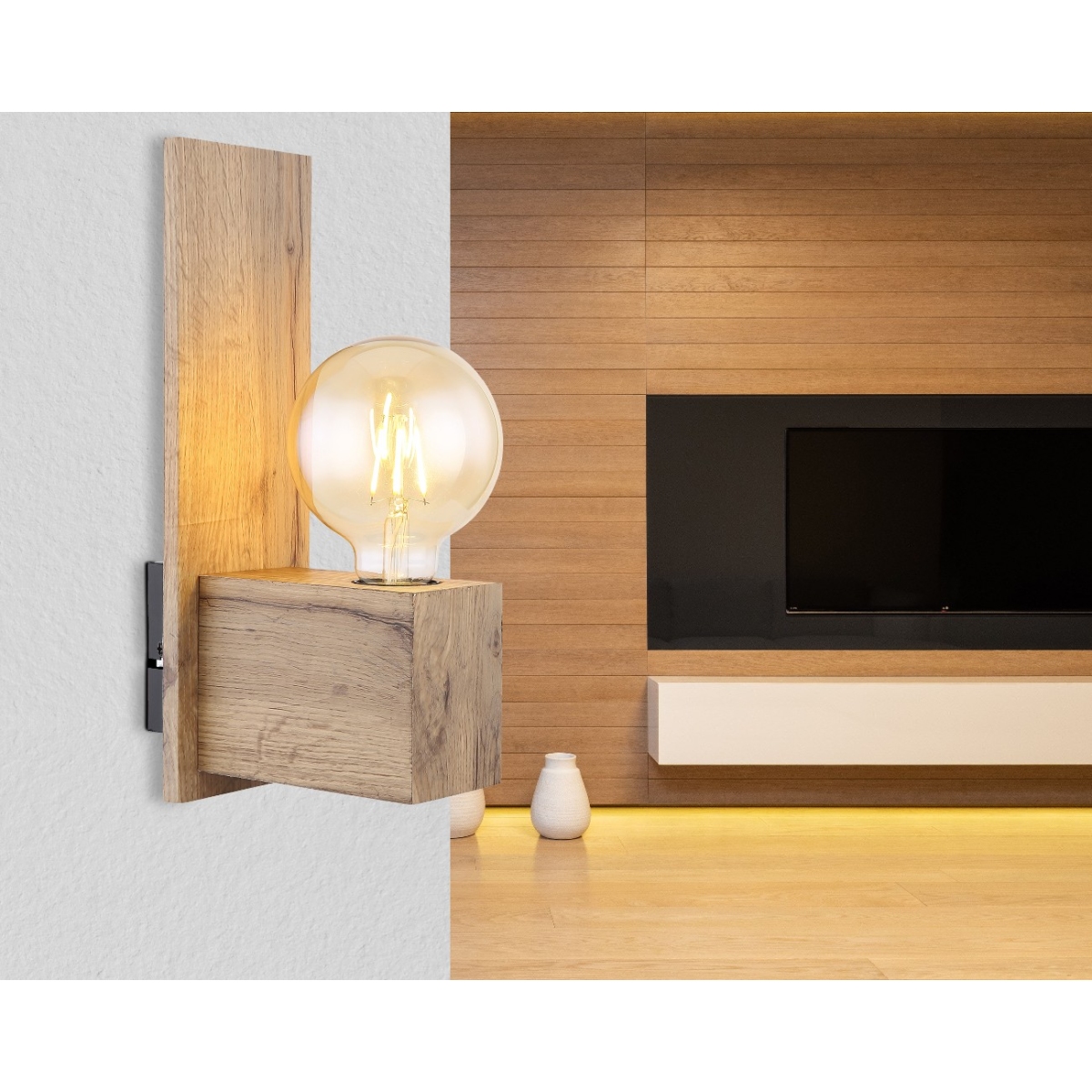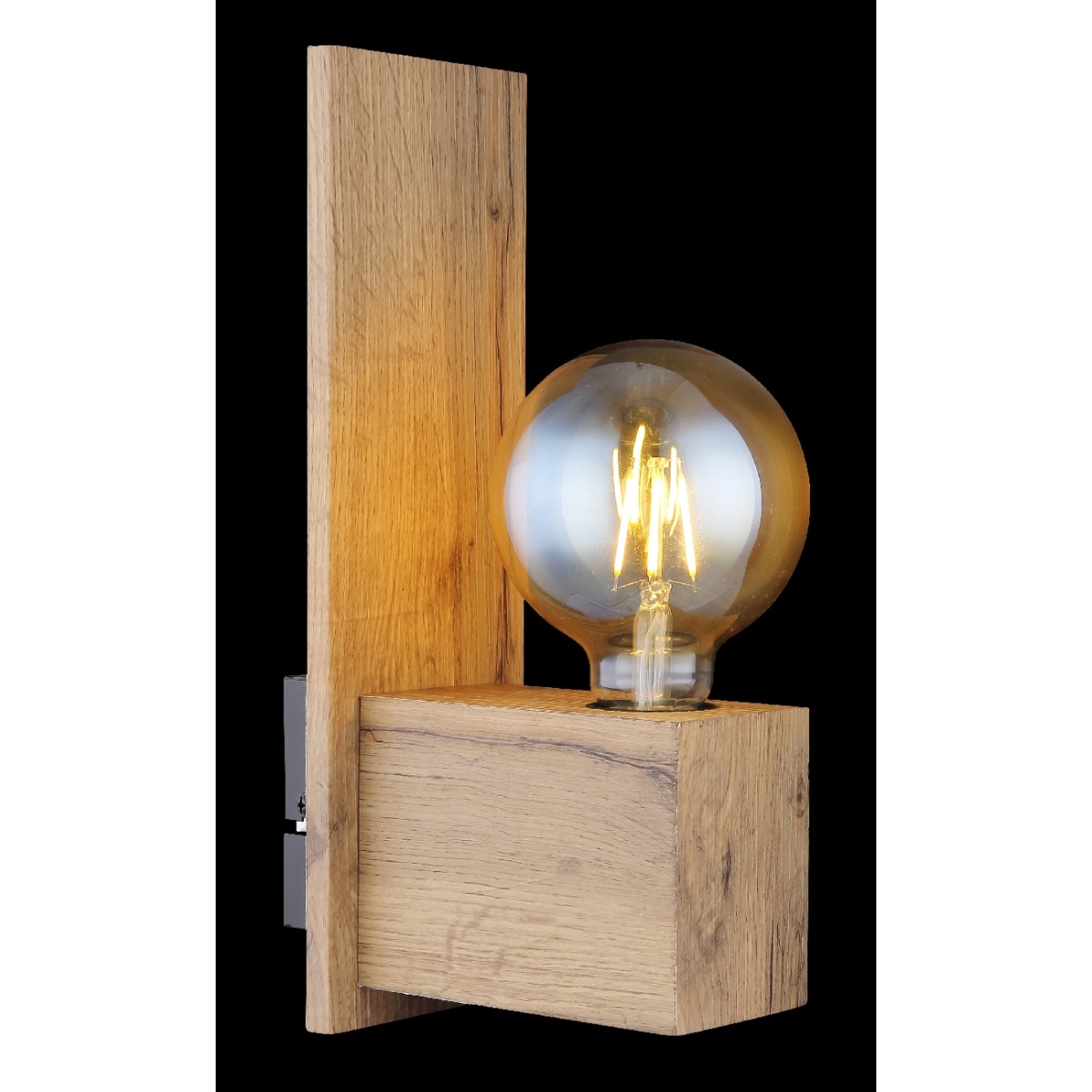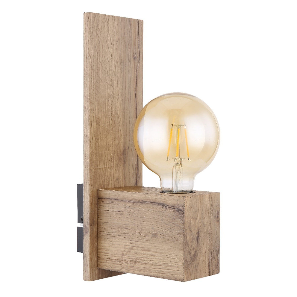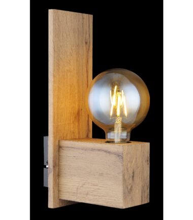 Ova vanvremenska zidna lampa inspiriše svojim prelepim dizajnom od drveta. Ova zidna lampa (9x30cm) sastoji se od drvenog bloka sa prepustom od 16cm iz kojeg viri E27 grlo. Grlo E27 vam omogućava da koristite sijalice po vašem izboru, do maksimalne snage od 60 vati.
