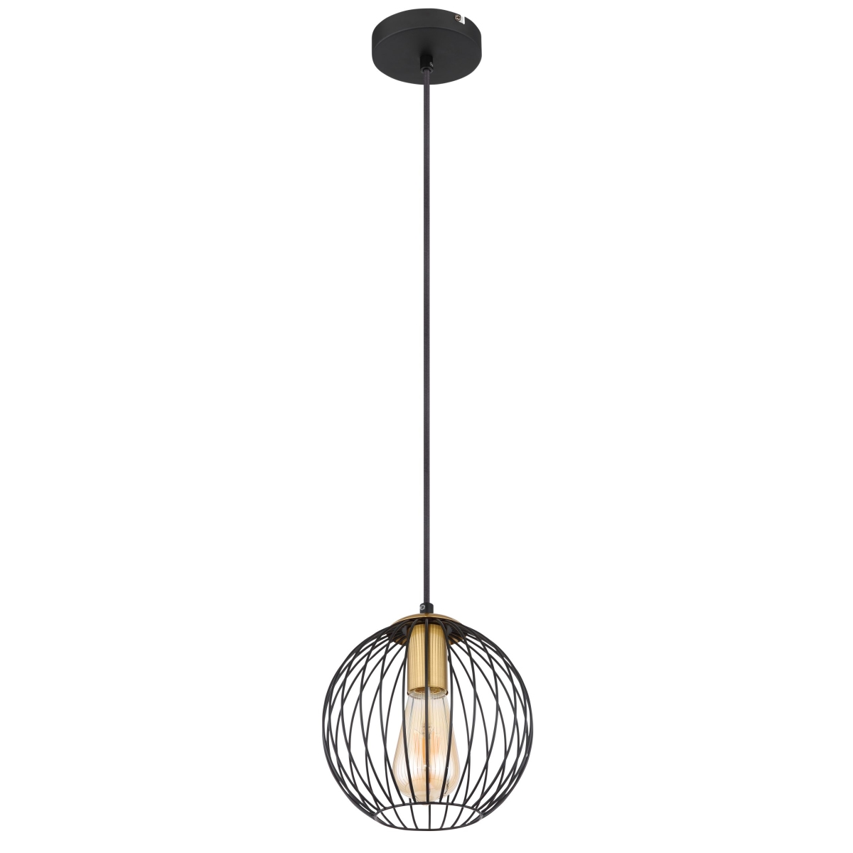 Ova visilica iz EUZEBIUS serije (ø 20 cm) je divan dodatak vašem enterijeru. Sferni metalni abažur visi sa plafona na crnom kablu. Grlo E27 uokvireno mesinganim metalom u okviru abažura može biti opremljeno odgovarajućim svetlosnim izvorom po vašem izboru, što vam pruža mogućnost da pojedinačno odredite laganu boju i jačinu. Pored toga, visina lampe može da se podesi i do 150 cm tokom instalacije. Sa ostalim modelima iste serije možete upotpuniti celokupnu sliku u svom domu.