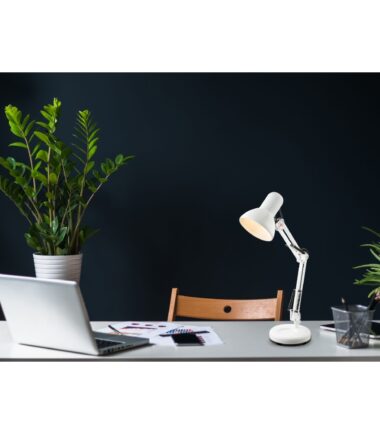 Ova bela stona lampa je idealan dodatak svakom stolu. Veoma je ekonomičana jer se mogu koristiti LED sijalice. Tri zgloba omogućavaju optimalno poravnavanje svetlosnog sjaja kako bi se omogućio opušten rad.