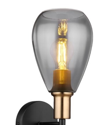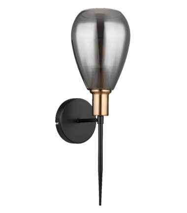 Ova zidna lampa serije FANNI ubeđuje sjajnim dizajnom. Crna mat metalna šipka prodire iz okrugle zidne osnove, na kojoj se, sa prepustom od 19 cm, nalazi E27 grlo sa oblikovanim staklenim abažurom u boji dima. Grlo E27 vam omogućava da sami odredite boju svetla i jačinu do maksimalnog izlaza od 40 vati.