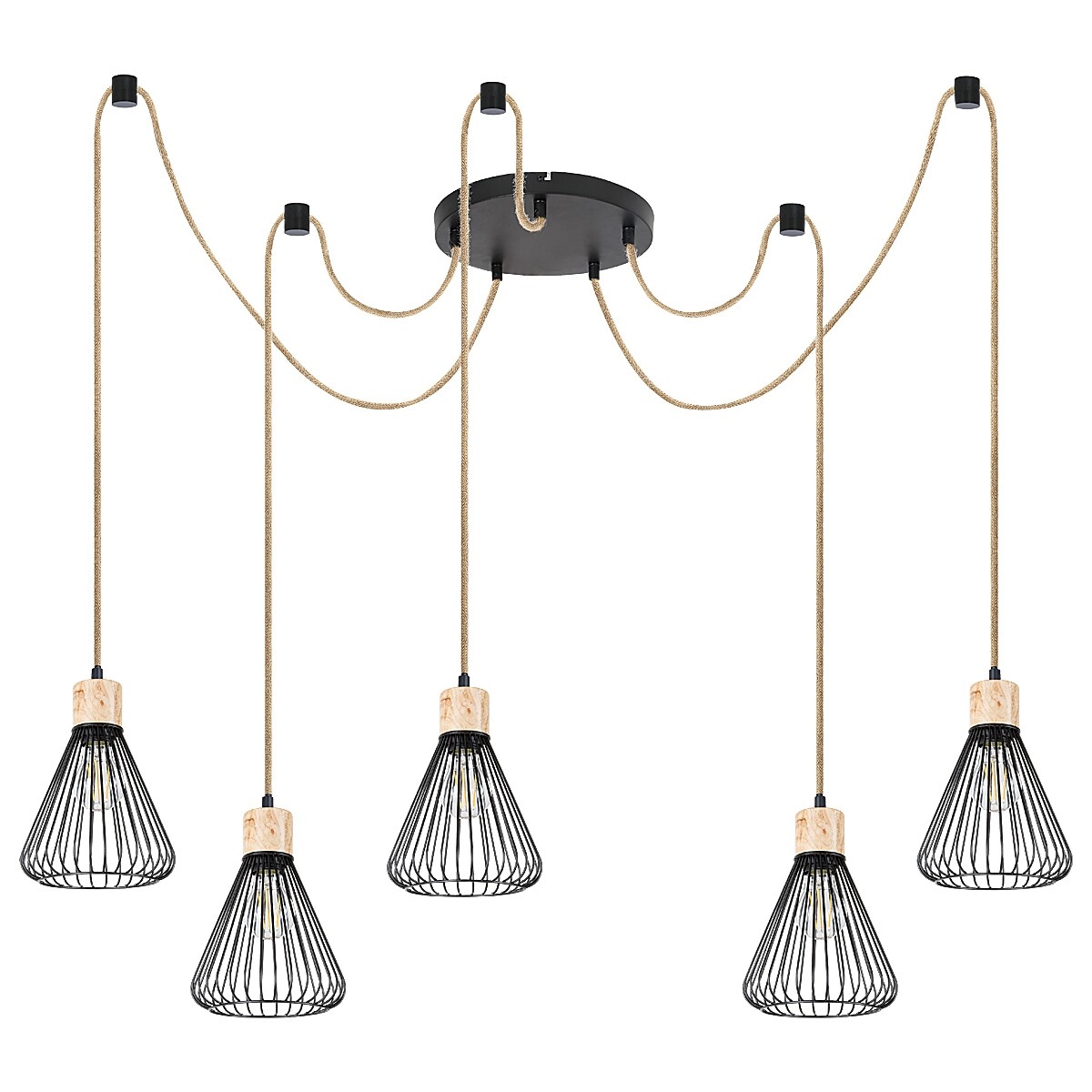 Visilica FARFALLE sa 5 sijalica u industrijskom stilu biće karakterističan deo nameštaja vaše moderne dnevne ili spavaće sobe. Napravljen od metala i drveta, ovaj model je jedinstven po zvonastim rešetkastim abažurima koji se šire nadole i kablovima čija je boja prilagođena boji glave sijalica. Pet glava sijalica su boje bukve, dok su abažuri i okruglo ukrasno postolje crne boje. FARFALLE može da se koristi sa pet sijalica, svaka sa snagom do 40W. Tip grla je E27. Pošto vam abažuri omogućavaju da u potpunosti vidite izvore svetlosti, dobra je ideja koristiti ovu lampu sa sijalicama nekonvencionalnog, izuzetnog oblika. Ako želite da poboljšate intimnu, prijatnu atmosferu, izaberite izvore svetlosti koji zrače toplo belo svetlo. Dimenzije FARFALLE visilice sa 5 sijalica su sledeće: prečnik svakog abažura je 180 mm, rastojanje od plafona je 1.200 mm, prečnik ugradnje je 250 mm. Ovaj model se isporučuje bez izvora svetlosti