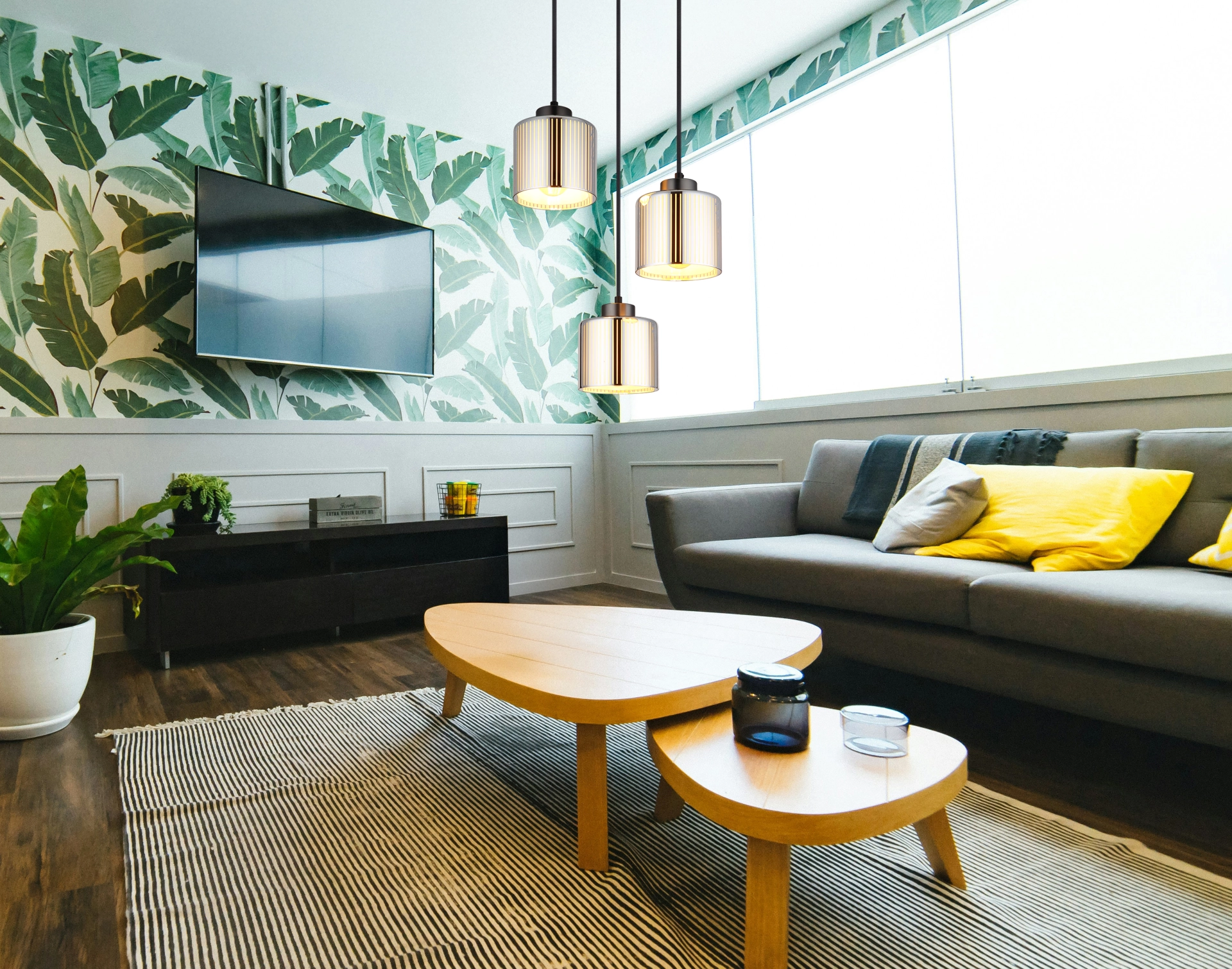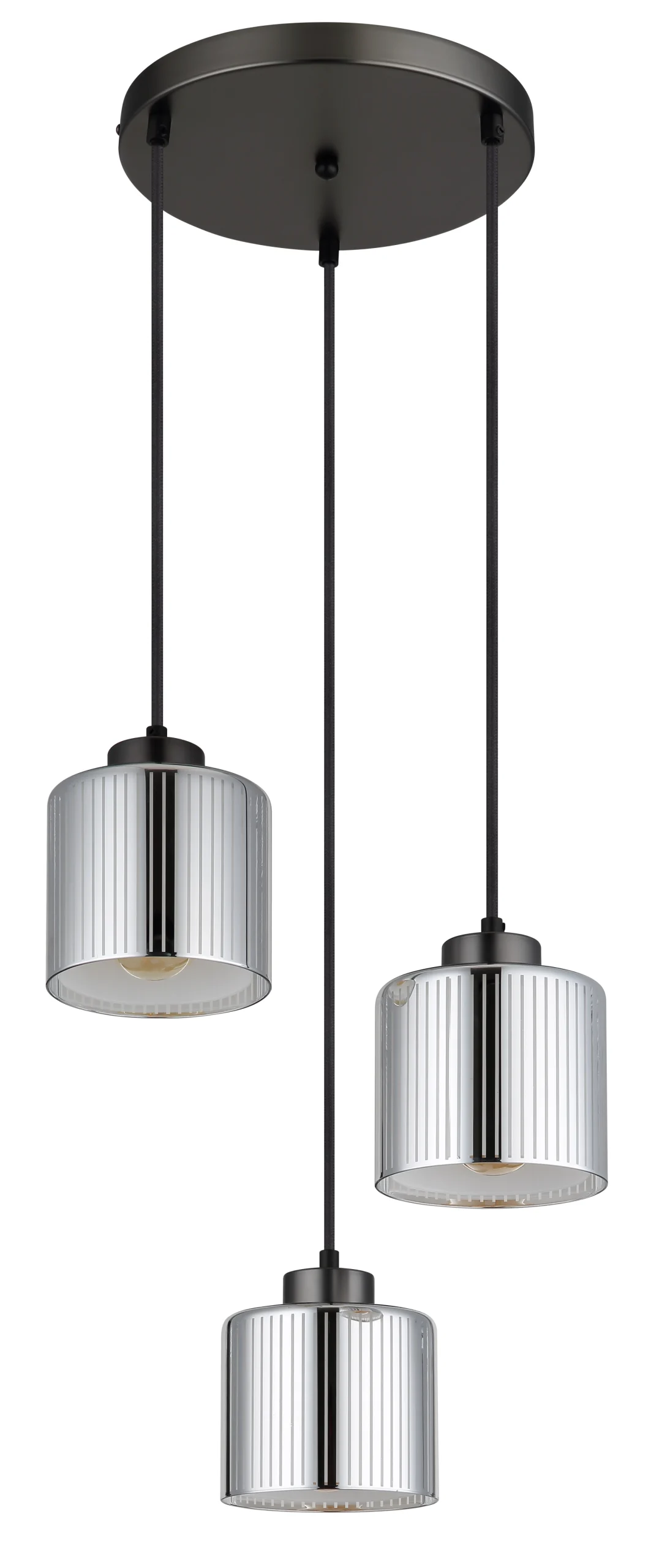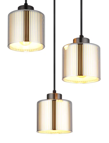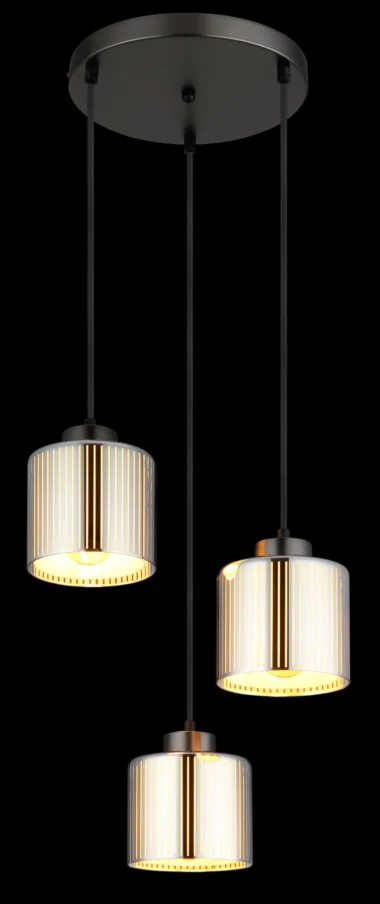 Okrugla viseća lampa impresionira svojim modernim dizajnom i elegantnim izgledom. Metalno kućište u crnoj i hrom boji obezbeđuje stilski izgled koji se uklapa u svaki enterijer. Tri cilindrična abažura od hromiranog stakla sa prugama i opalno unutrašnje staklo stvaraju fascinantan efekat osvetljenja i daju prostoriji prijatnu atmosferu. Sa prečnikom od 330 mm, lampa je kompaktna, ali privlačna. Opremljena je sa tri E27 grla (sijalice nisu uključene) tako da se osvetljenost i boja svetlosti mogu individualno podešavati. Idealna kao viseća lampa iznad trpezarijskog stola ili u dnevnim sobama – viseća lampa kombinuje moderan dizajn sa funkcionalnim osvetljenjem i postavlja stilske akcente. Kombinacija metala i stakla stvara harmoničnu atmosferu osvetljenja koja vašoj sobi daje eleganciju i udobnost. Savršena za svakoga ko želi da postavi sofisticirane akcente u svoje osvetljenje.