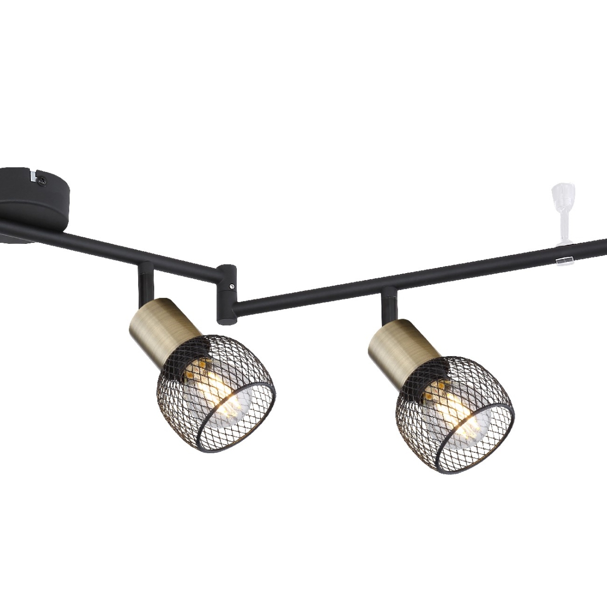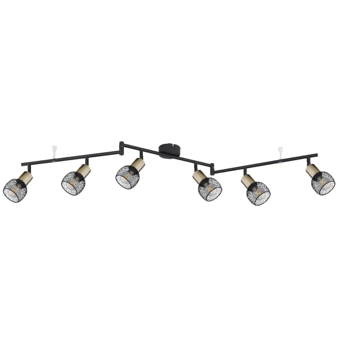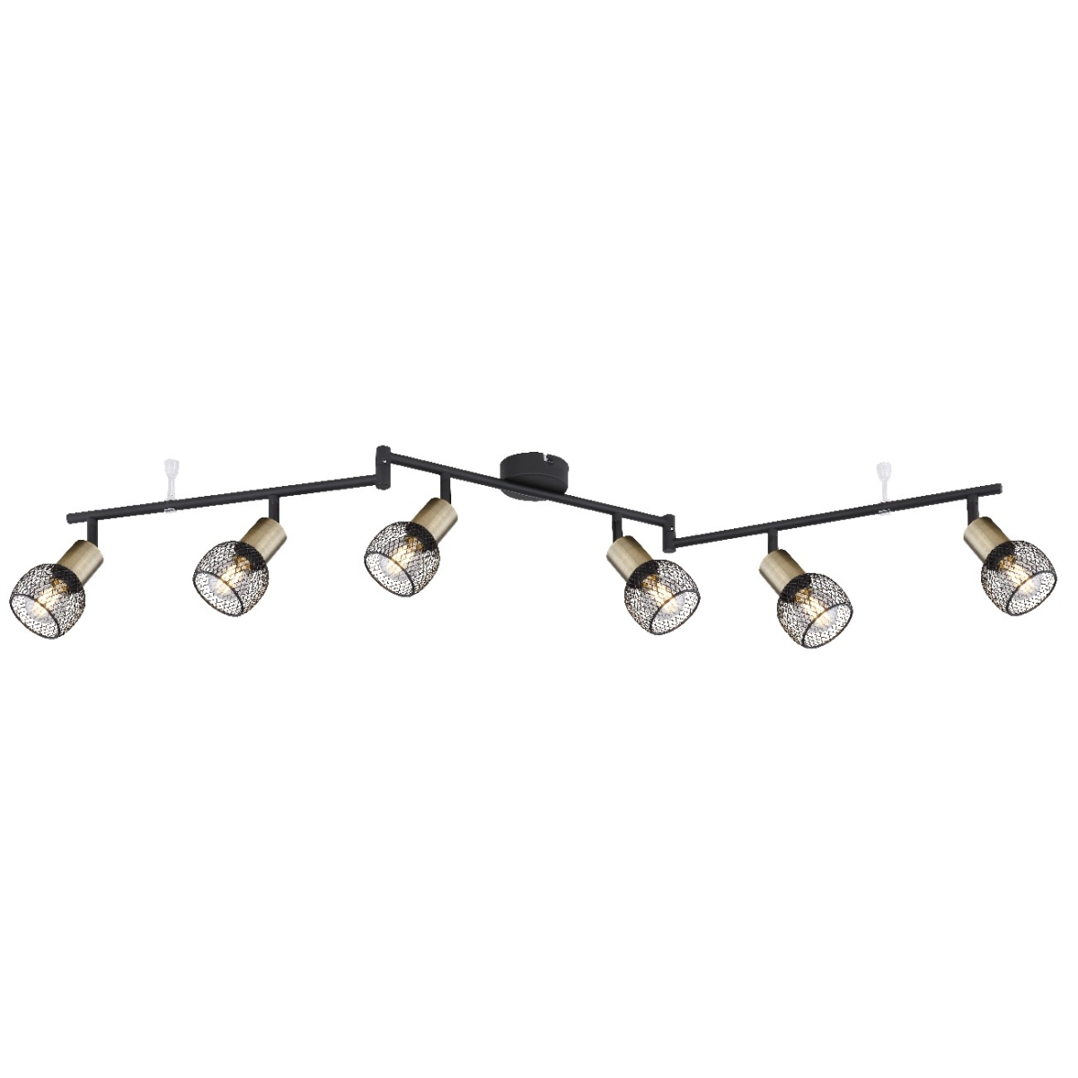 Ovaj spot serije FIASTRA ističe se svojim elegantnim dizajnom napravljenim od crno-mat metala i starog mesinga. Reflektor dužine 120 cm sastoji se od tri metalne grane, čije uglove možete podesiti tokom instalacije i koji su opremljeni sa po dva E14 grla uokvirena starim mesinganim crnim metalnim mrežastim abažurima. Ona mogu biti opremljena odgovarajućim sijalicama po vašem izboru, pri čemu možete odrediti laganu boju i jačinu pojedinačno. Sa nekoliko modela iste serije možete da dovršite celokupnu sliku u svom domu.