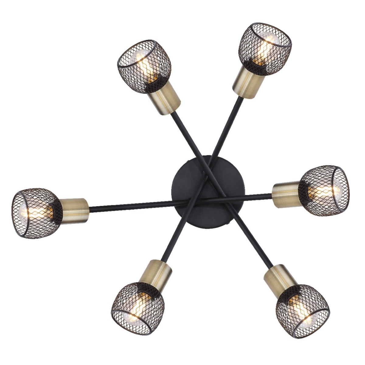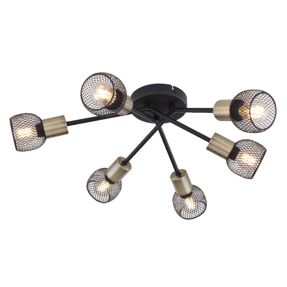 Ova plafonska lampa iz serije FIASTRA (ø 60 cm) ističe se svojim elegantnim dizajnom napravljenim od crno-mat metala i starog mesinga. Šest metalnih mrežastih abažura, svaki može biti opremljena E14 sijalicom po vašem izboru. To vam pruža mogućnost da odredite boju svetla i jačinu po svojoj želji i obezbedite elegantan ambijent u vašem enterijeru.