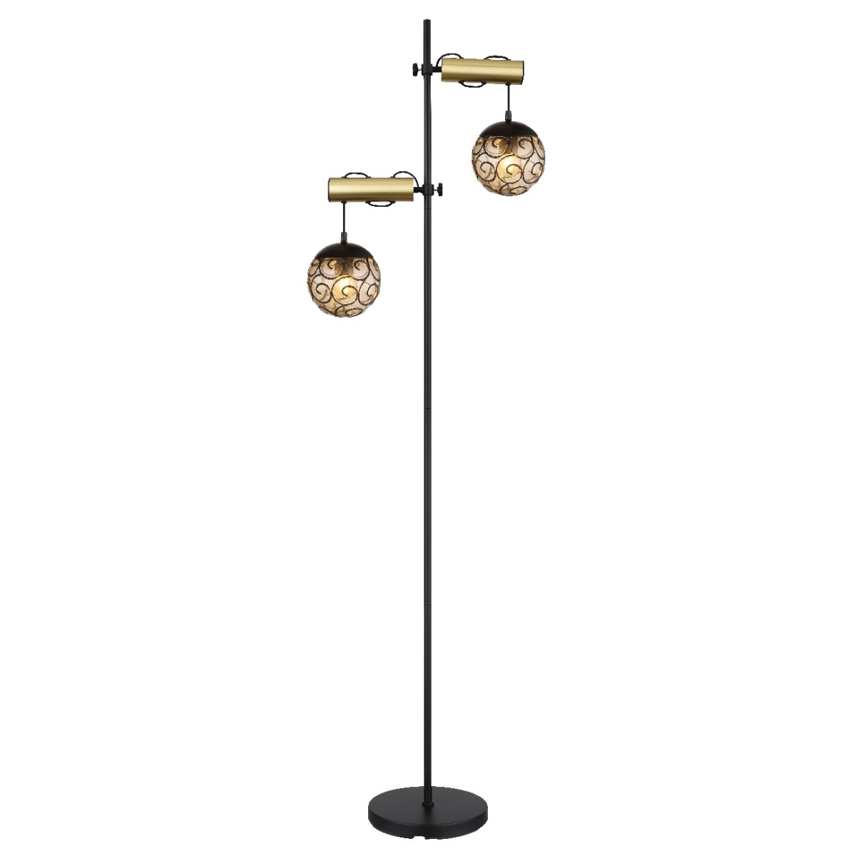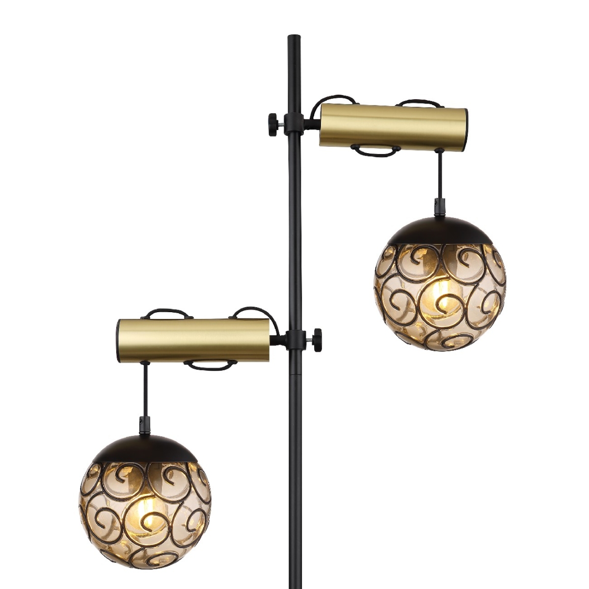 Ova prelepa podna lampa inspiriše sjajnim dizajnom. Iz okrugle baze prodire oko 1,7 metara dugačka crno mat metalna šipka na kojoj postoje dve visine podesive grane boje zlata. One su opremljene prelepim dekorativnim staklenim abažurom i E27 grlom čija se visina takođe može podesiti kablovima. E27 grla vam daju mogućnost da se odlučite za laganu boju i jačinu do maksimalnog izlaza od 9 vati.