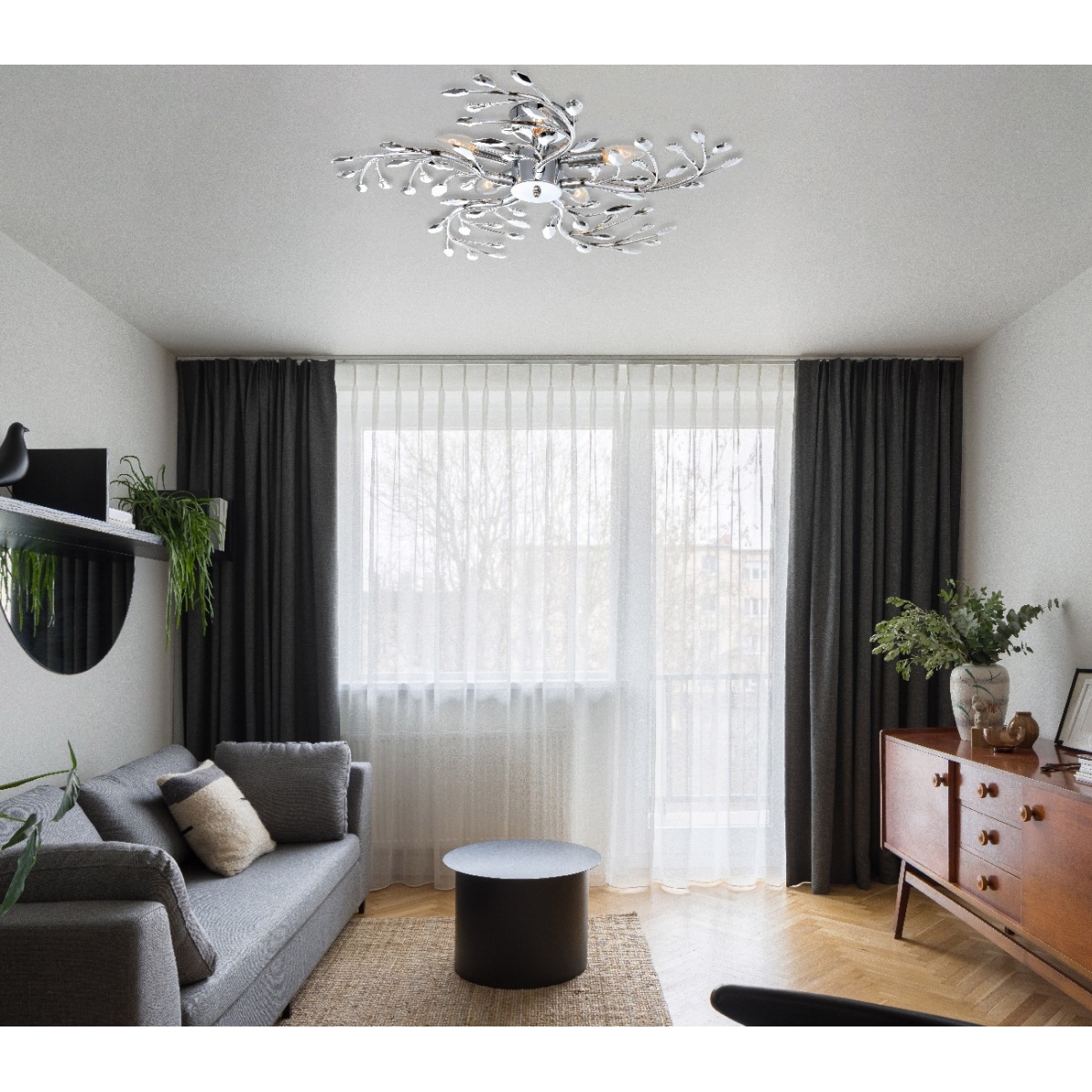 Sa svojim ukrasnim granama, ova lampa prečnika 65 cm, iz FLASH serije, privlačiće poglede u svakoj prostoriji. Satinirani, akrilni i hromirani elementi čine ovu lampu jedinstvenom po svom izgledu. Opremljen sa pet E14 grla, ovaj model vam omogućava da slobodno odaberete bilo koju sijalicu (max. 40W). Preporučujemo LED sijalice zbog njihove trajnosti i uštede energije. Sa ostalim modelima ove serije, sliku možete usavršiti u svojim sobama.