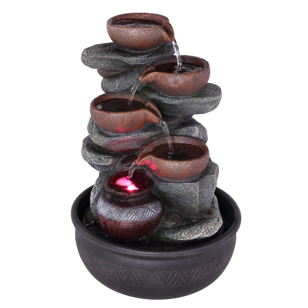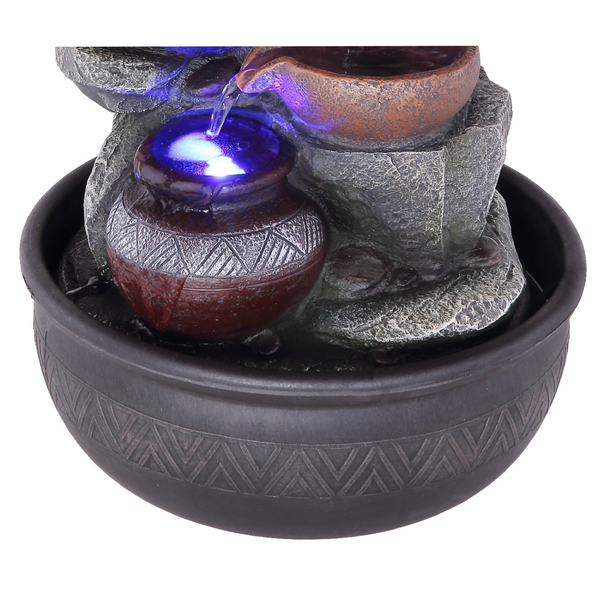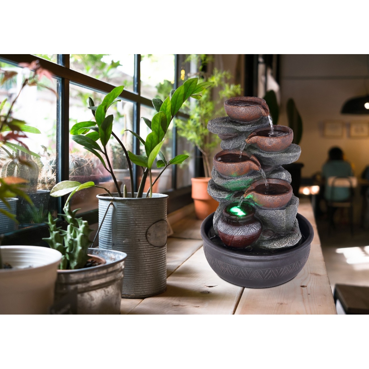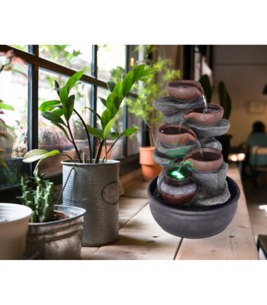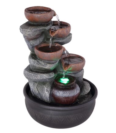 Stona fontana serije FONTANA (visoka skoro 40cm) sa motivom fontane mogla bi da postane centar u vašem prostoru. Fontana u crnoj i sivoj boji ima uključenu pumpu i nudi pravo svetlo sa ugrađenom LED sijalicom, koja se takođe može menjati boje. U istoj seriji proizvoda pronaći ćete i druge fontane ovog tipa.