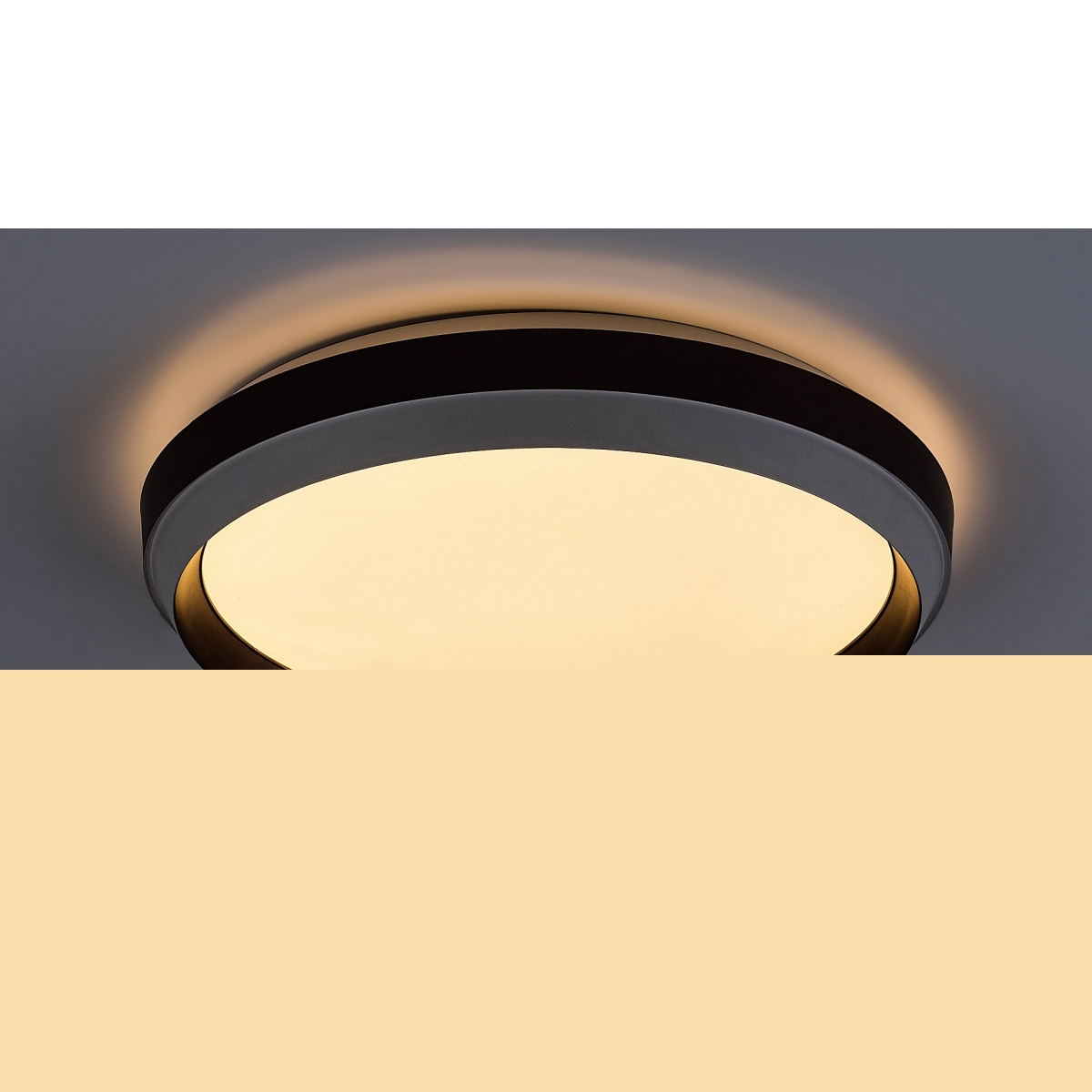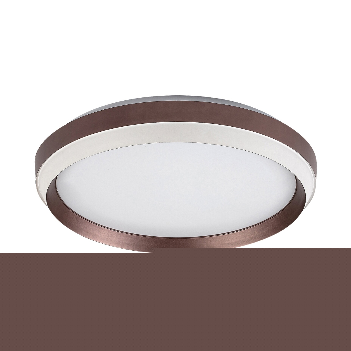 Okrugla plafonska lampa Fontana preporučuje se onima koji traže moderan centralni izvor svetlosti sa čistim dizajnom u svojoj dnevnoj sobi gde se dodaci toplih nijansi dobro uklapaju u nameštaj. Smeđa metalna lampa dopunjena je mat belim plastičnim abažurom. Fontana ima ugrađeni LED izvor svetlosti energetske klase G snage 24W, svetlosnog toka od 1.100 lumena sa senkom i 2.600 lumena bez senke, i životnog veka od 25.000 sati. Temperatura boje plafonskog svetla je 3.000 K; tj. zrači toplo belo svetlo koje vam pomaže da stvorite ugodnu, intimnu atmosferu. Prečnik Fontane je 390 mm, rastojanje od plafona je 70 mm.
