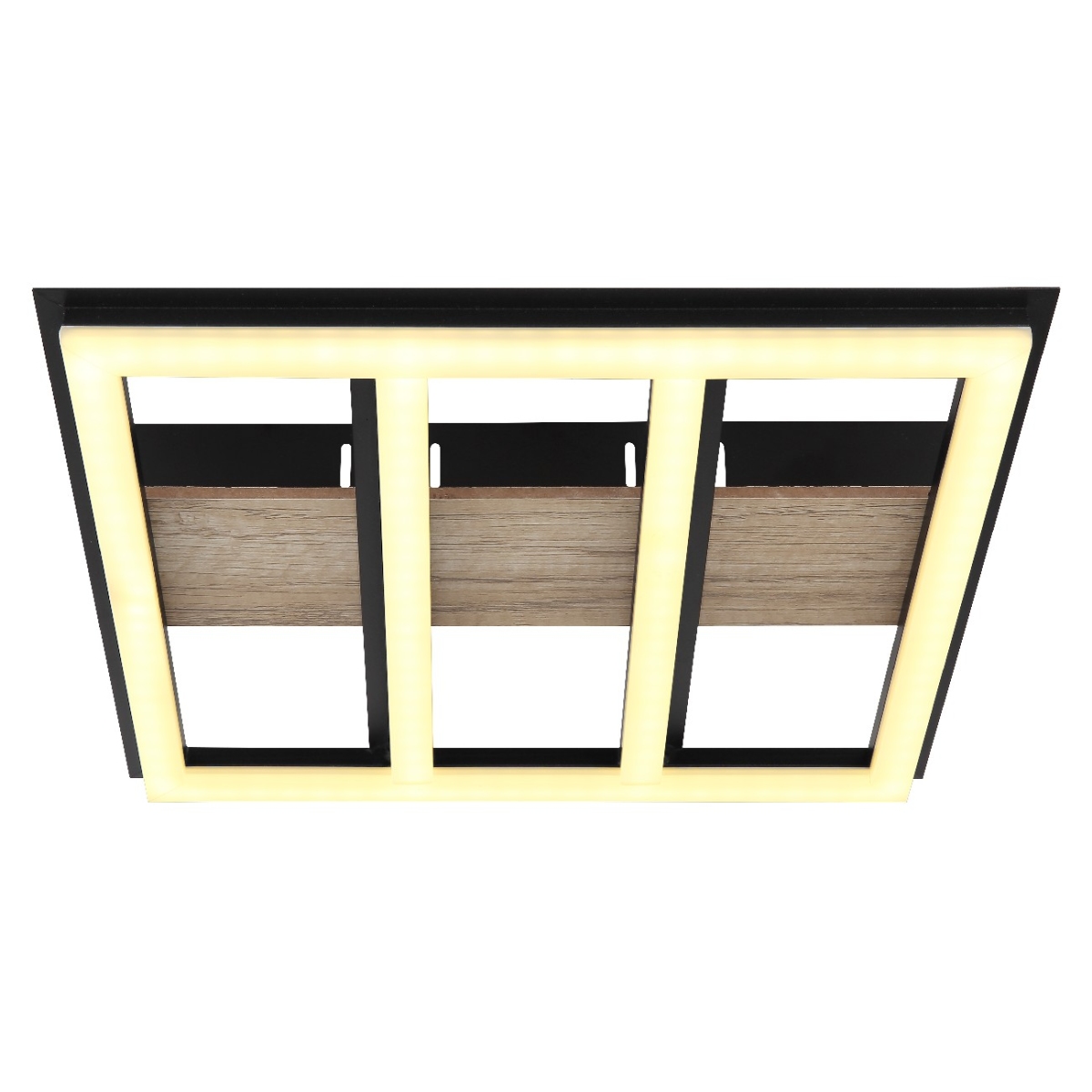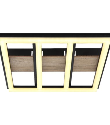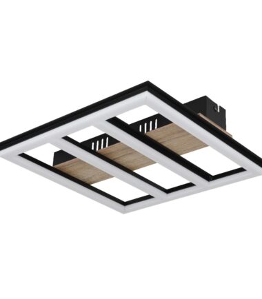 Plafonska lampa serije FROOMY u mat crnoj boji napravljena od metala i MDF-a nalik drvetu je elegantan izbor za bilo koju prostoriju. Plastični opalni abažur pruža difuzano i prijatano svetlo. Aluminijumske aplikacije u mat crnoj boji daju dizajnu moderan dodir. Lampa ima veličinu 300x300x55mm, što je čini idealnom za manje prostorije. Uključeni LED ima izlaz od 18W i obezbeđuje svetlo i energetski efikasno osvetljenje sa izlazom od 1700lm na 3000K. Sa izvorom od 2200lm, lampa je takođe dobar izbor za zahteve veće svetline. Ova plafonska lampa je savršena za one koji traže moderno i praktično rešenje osvetljenja.