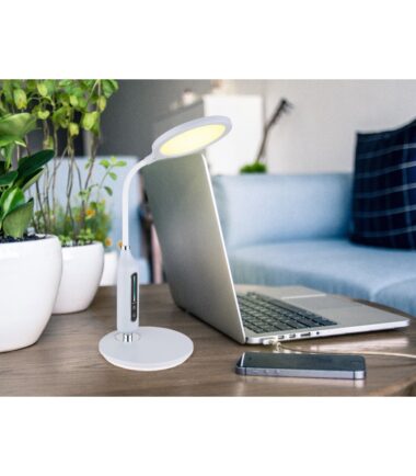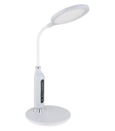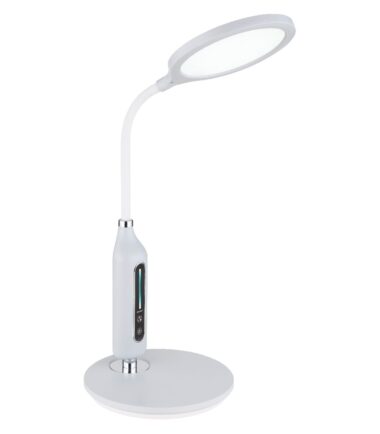 Moderna stona lampa serije FRUGGY inspiriše prelepim dizajnom i njenim funkcijama. Hromirana stona lampa napravljena od sivih silikona i plastike ima ukupnu visinu od 40,7 cm i obezbeđuje 3000 Kelvina topla bela, 4500 Kelvina neutralna i 6500 hladno belo svetlo. Pored toga, ova lampa se može zatamniti i fiksirati u tri svetlosne vrednosti. Pomoću dodira ON/OFF, možete da upravljate lampom i sačuvate svetlosne vrednosti nakon isključivanja lampe pomoću funkcije memorije. Flexo grana vam omogućava da pozicionirate lampu bez ikakvih problema.