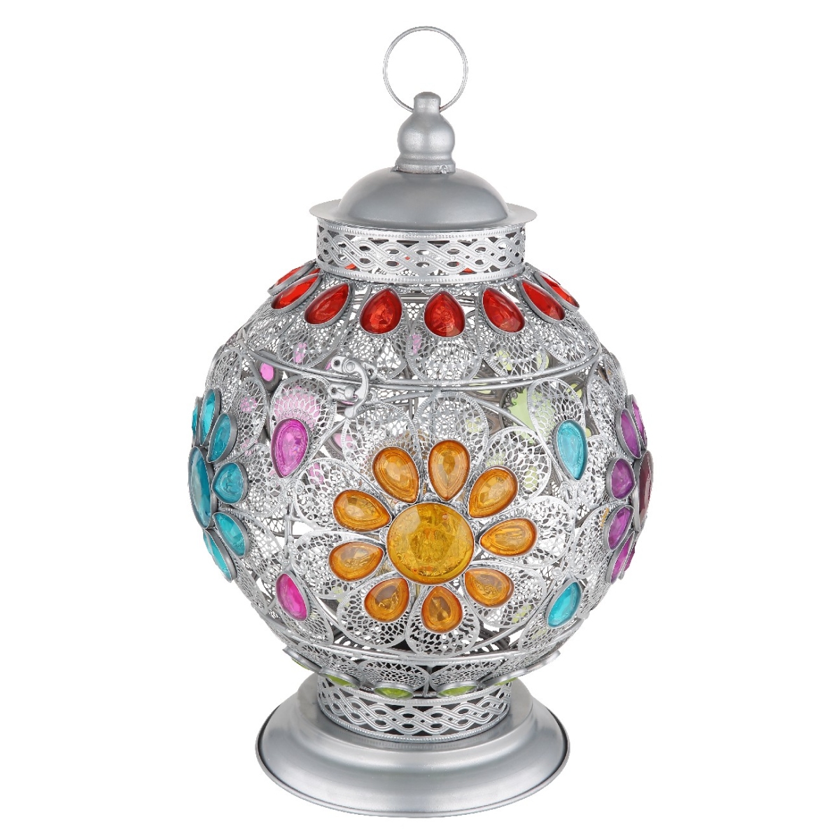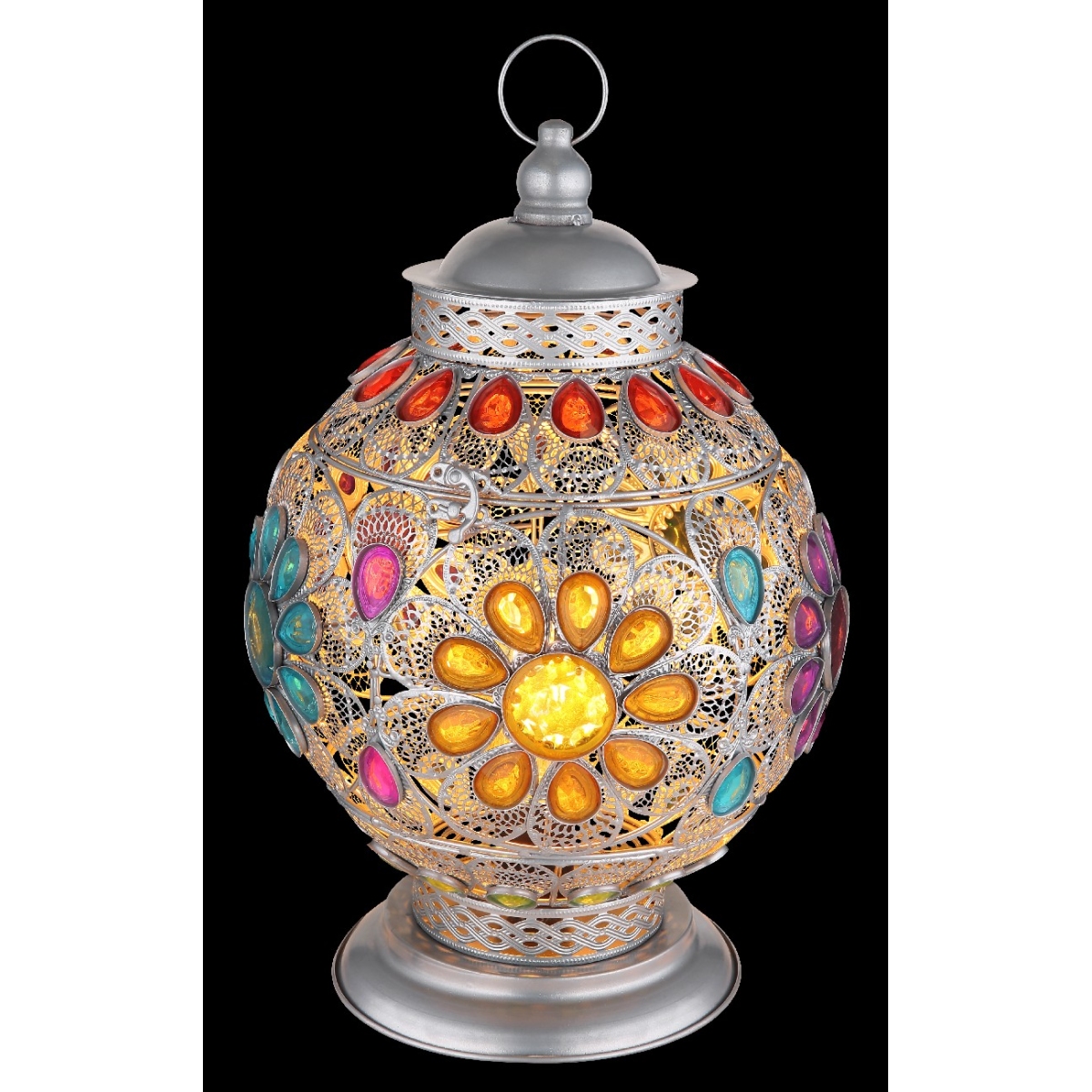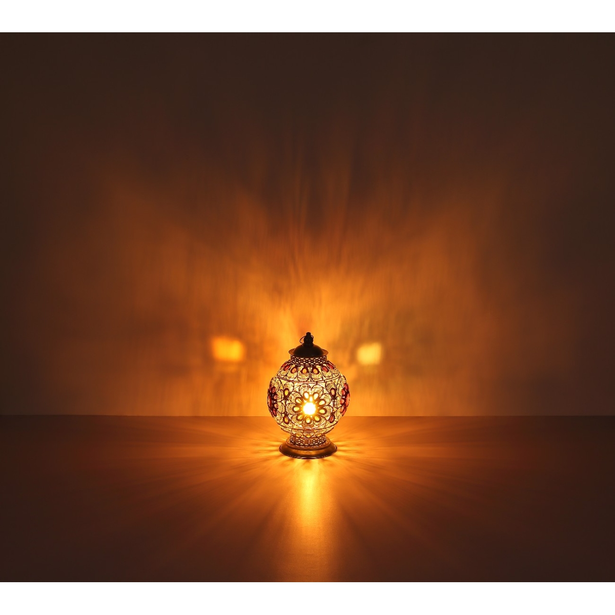 Ova šarena stona lampa inspiriše sjajnim dizajnom. Metalna kugla ovalnog oblika sa prelepim ukrasima akrilnih kristala pokriva E27 grlo. To vam daje mogućnost da sami odredite boju svetla i jačinu do maksimalnog izlaza od 40 vati.